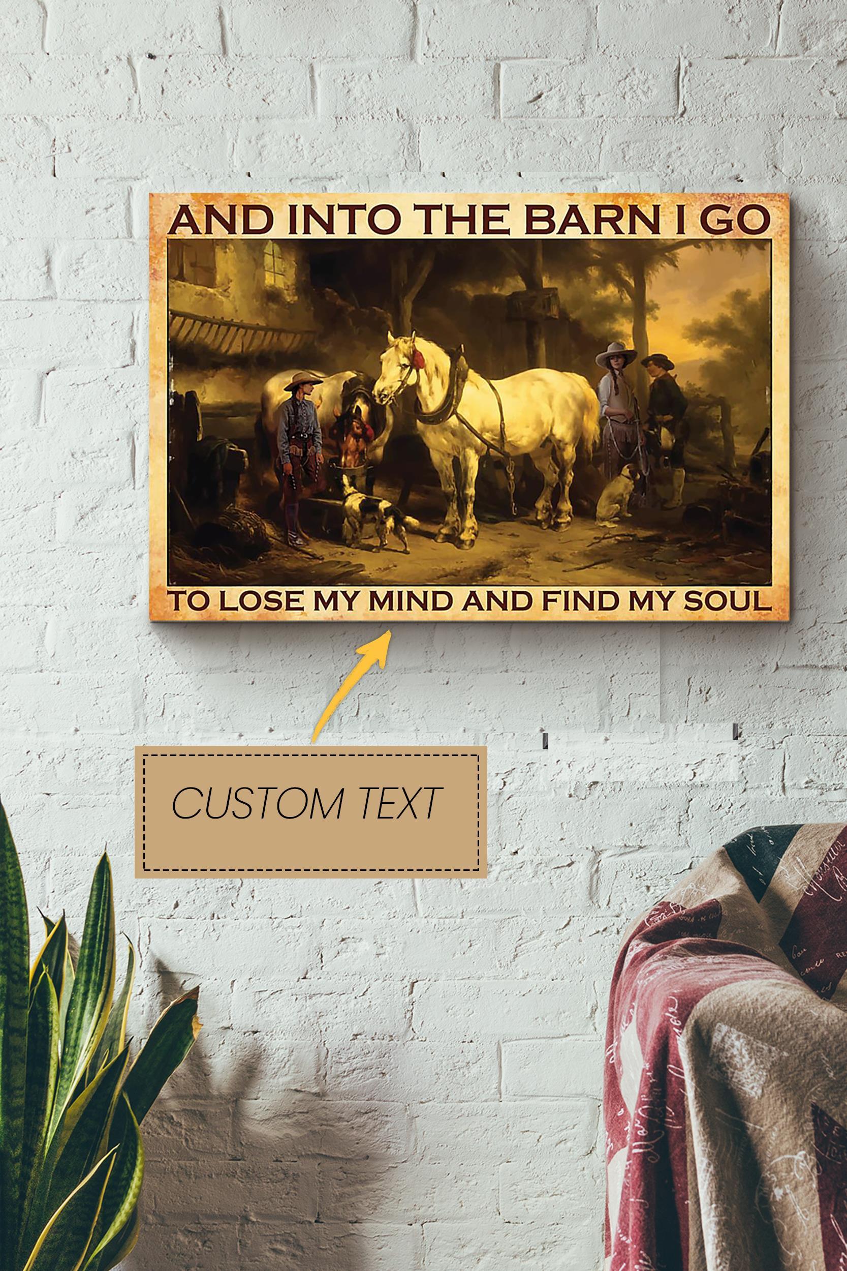 Cowgirl Into The Barn Poster – Animal Wall Art – Gift For Horse Lover Horse Rider Cowboy Farmhouse Decor Wrapped Canvas