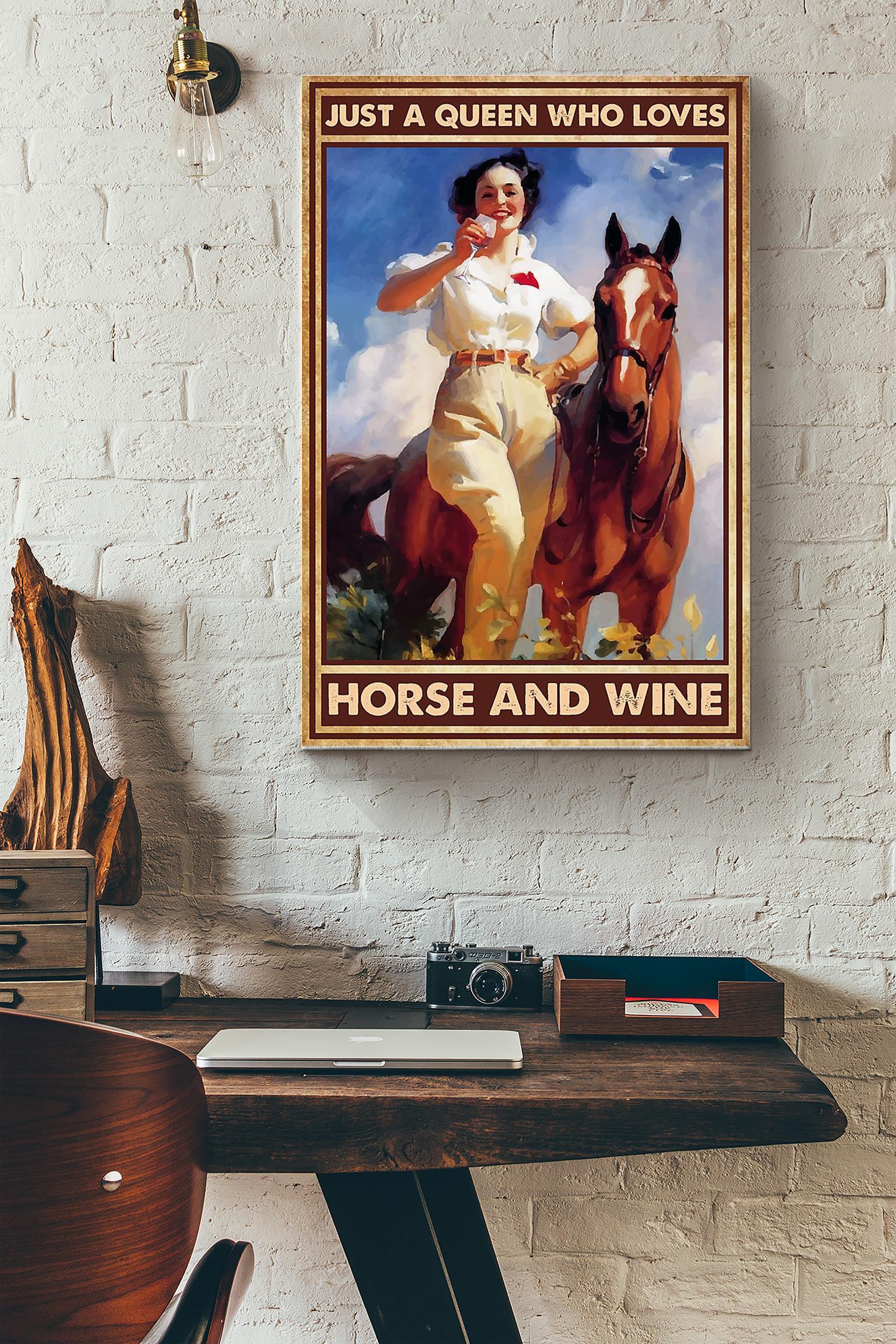 Cowgirl Just A Queen Love Horse And Wine Poster – Animal Wall Art – Gift For Horse Lover Horse Rider Cowboy Farmhouse Decor Wrapped Canvas
