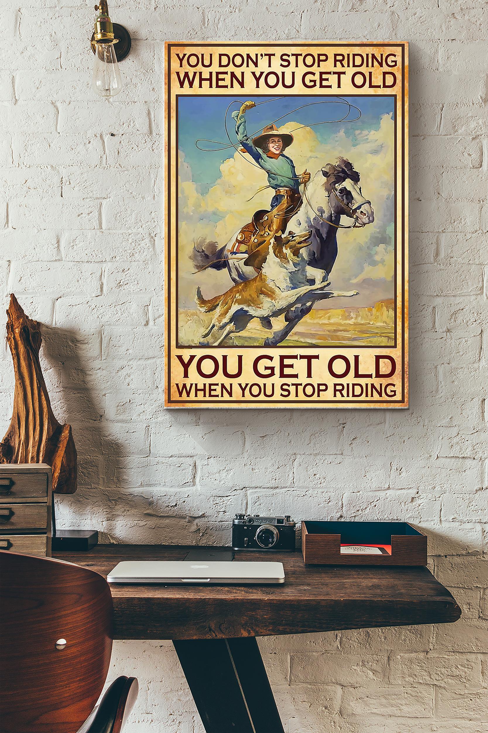 Cowgirl You Get Old When Stop Riding Poster – Running Horse Wall Art – Gift For Horse Rider Farmhouse Decor Horseback Rider Wrapped Canvas