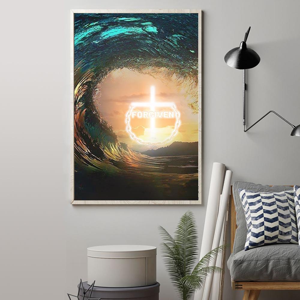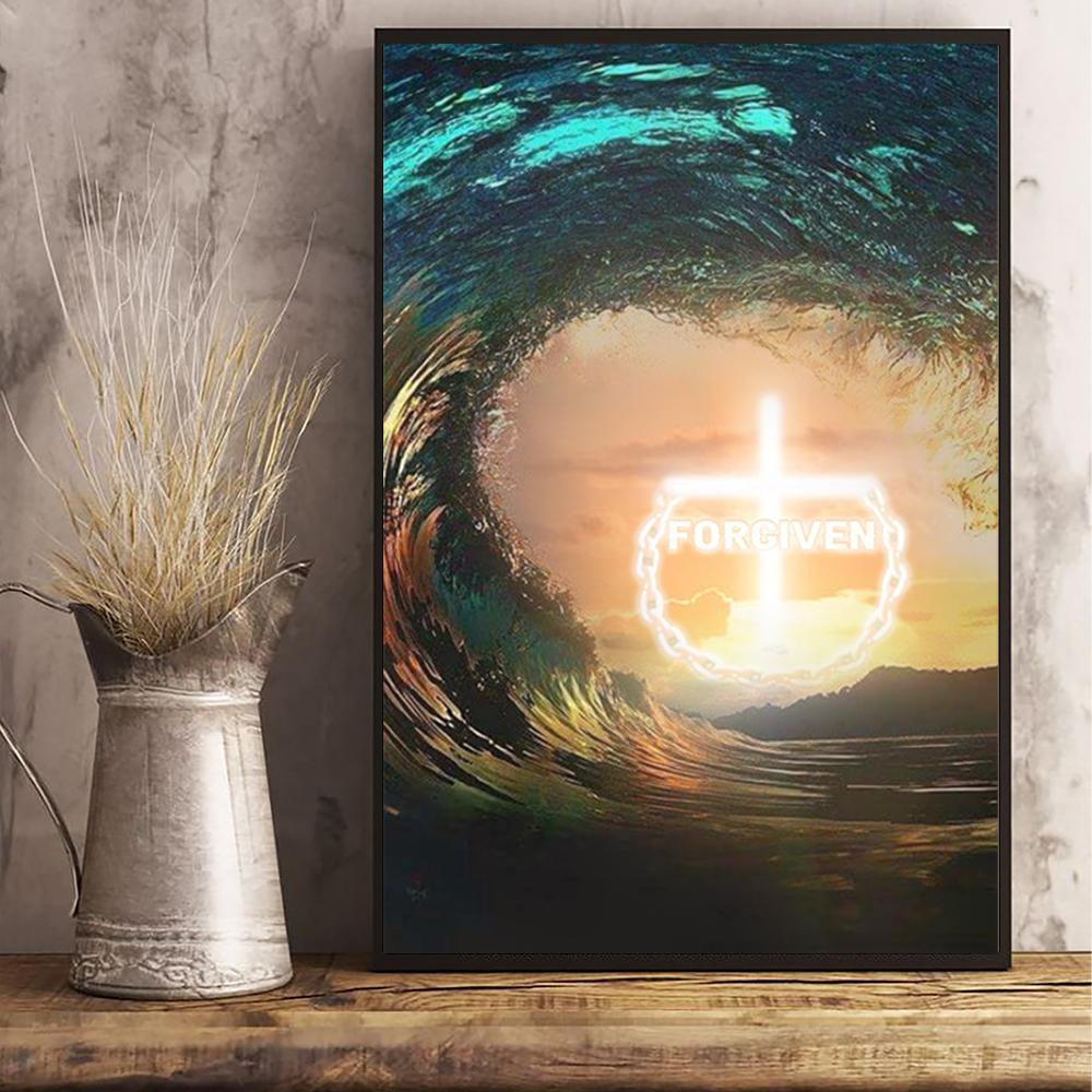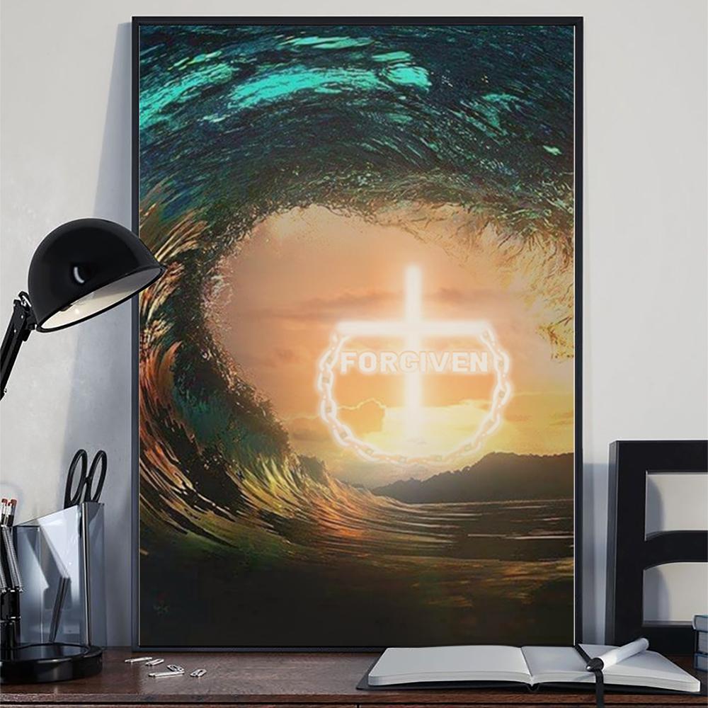 Cross Light Forgiven Through The Waves Poster Faith Christian Poster Home Wall Decor