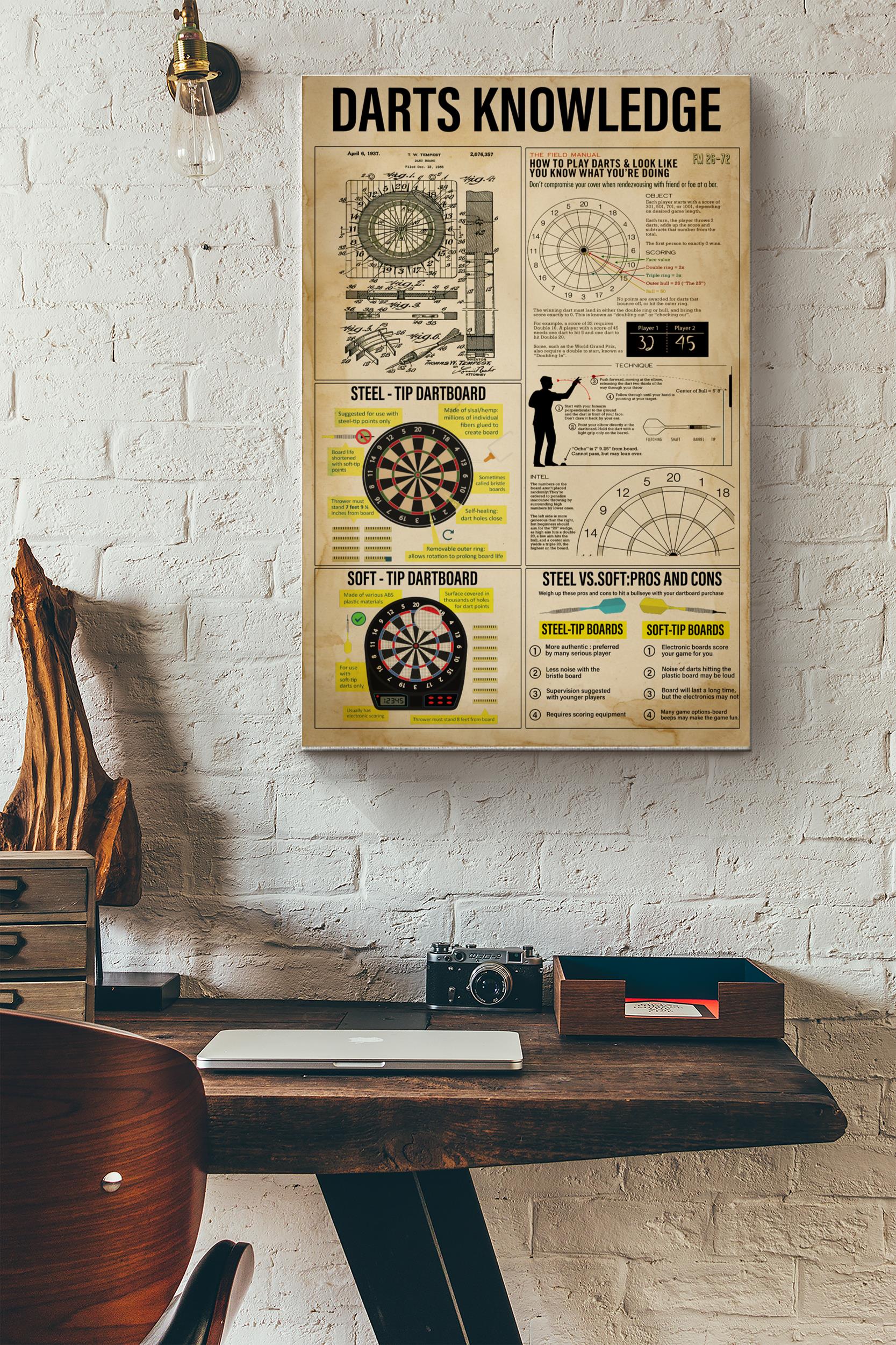 Darts Knowledge Basic Information Poster – Game Knowledge Wall Art – Gift For Gamer Dart Player Drinking Team Board Bar Center Dart Archery Wrapped Canvas