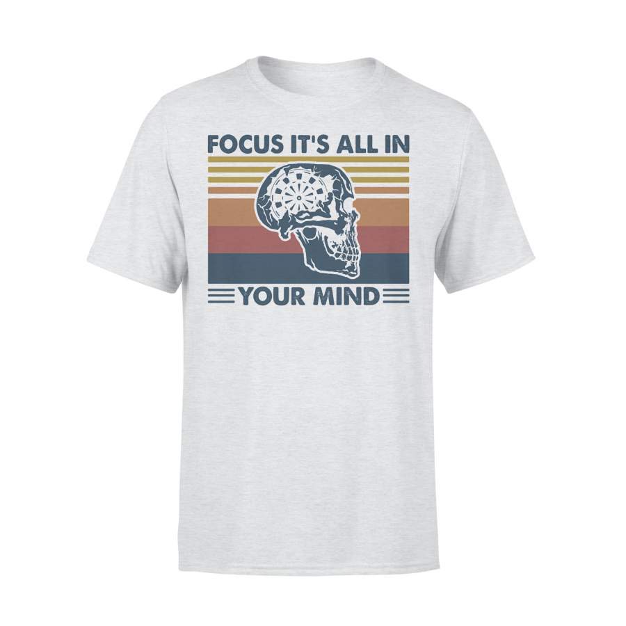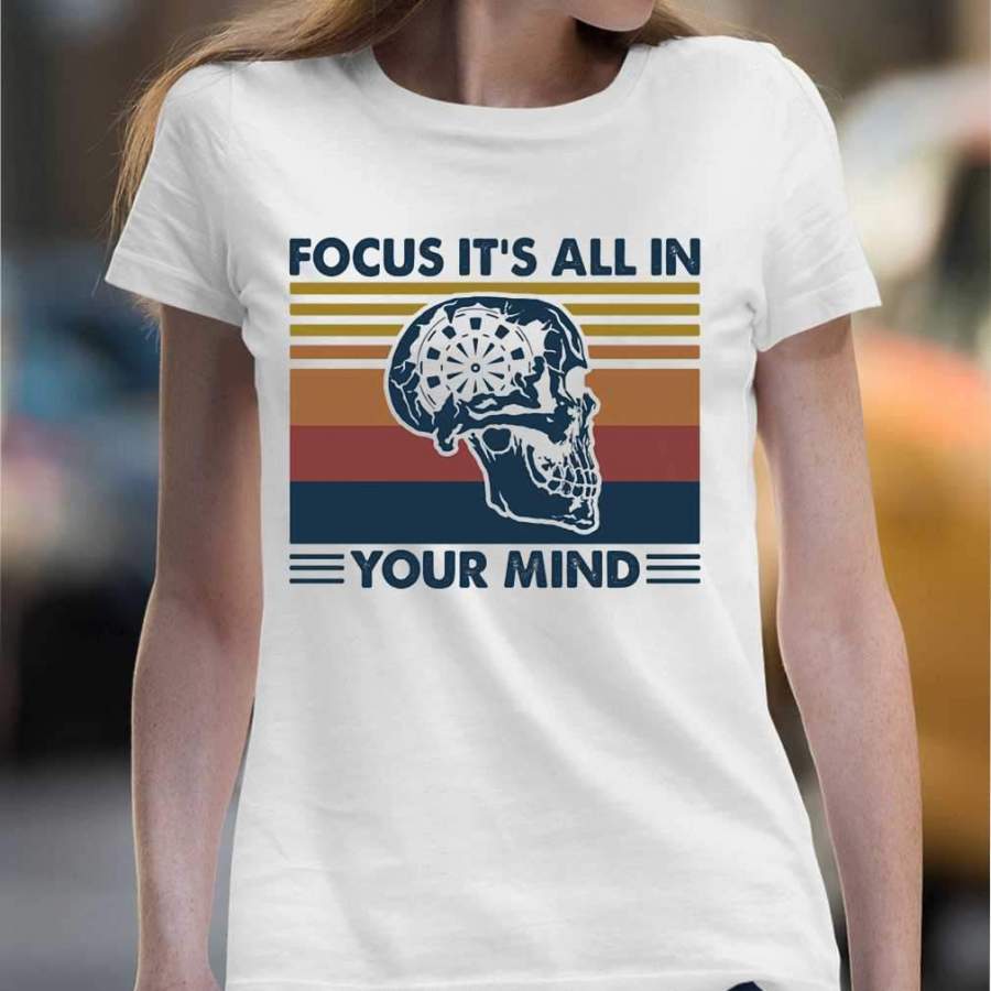 Darts Skull Focus It’s All In Your Mind Vintage Retro T-shirt
