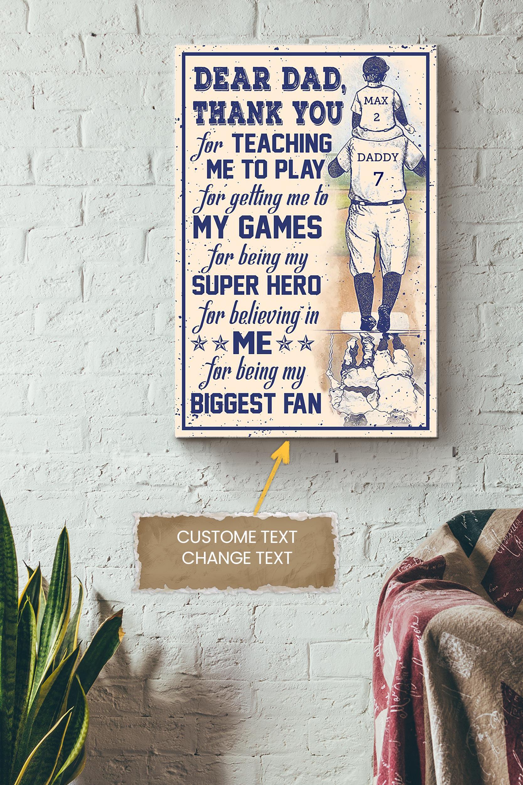 Dear Dad Thank You Personalized Poster – Father Wall Art – Gift For Daddy Dad Father’S Day Wrapped Canvas