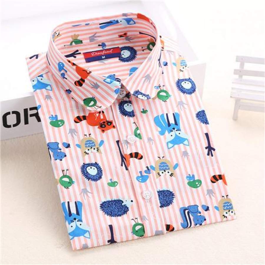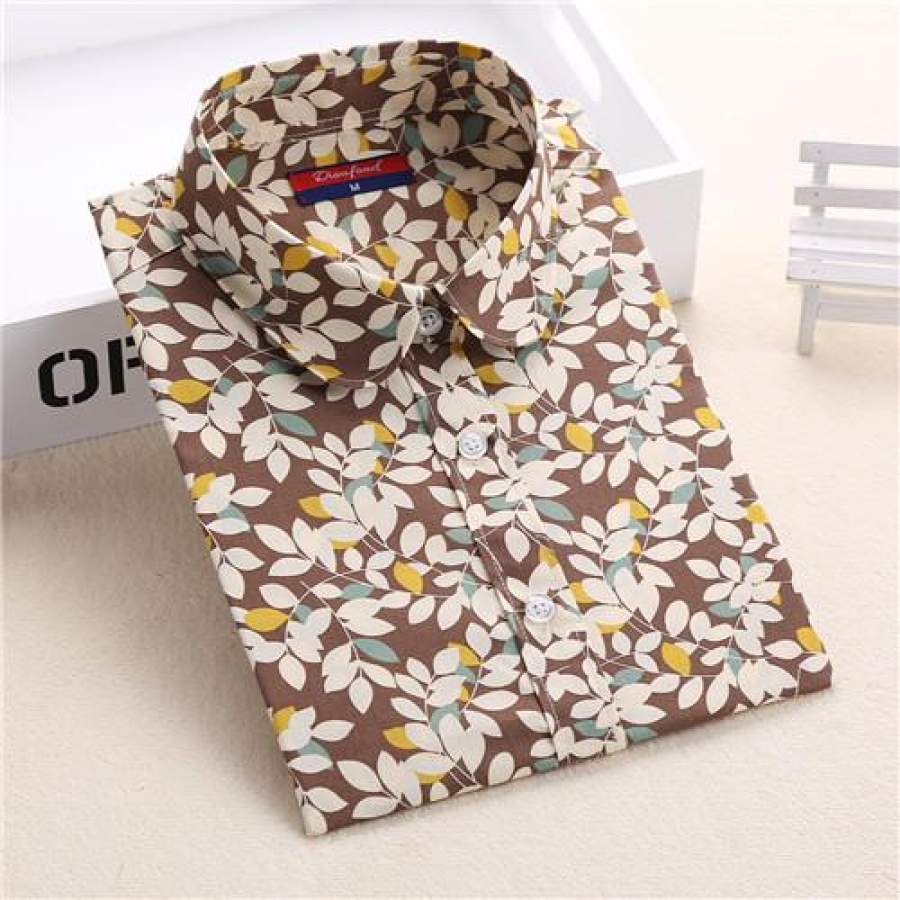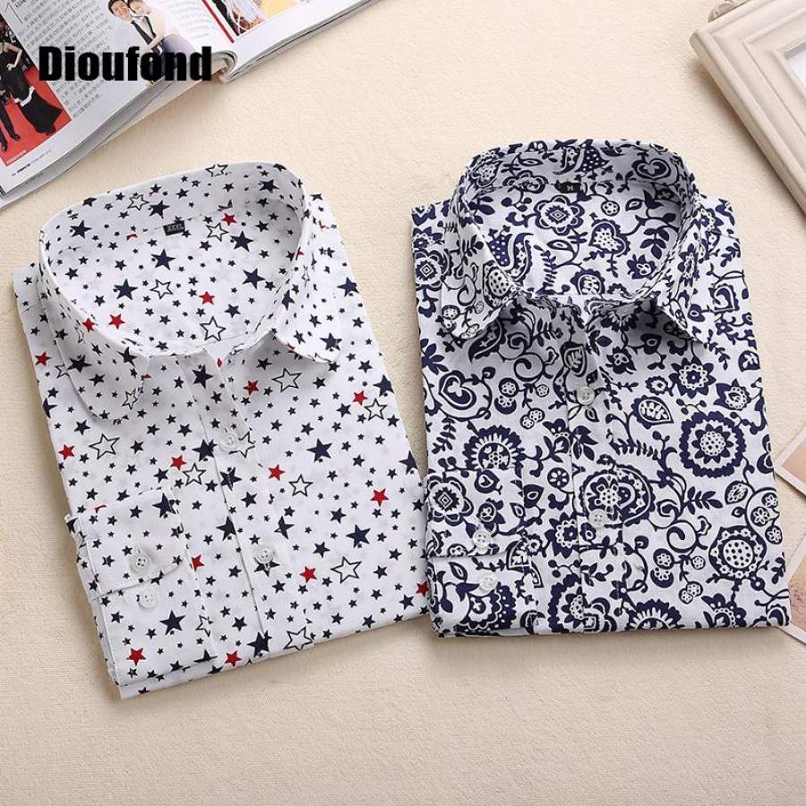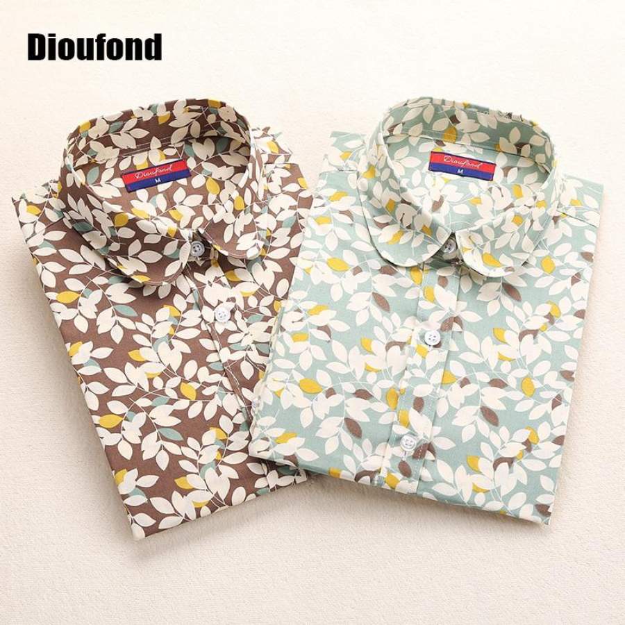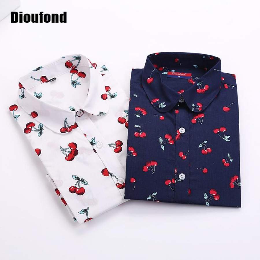 Dioufond New Floral Long Sleeve Vintage Blouse Cherry Turn Down Collar Shirt Blusas Feminino Ladies Blouses Womens Tops Fashion