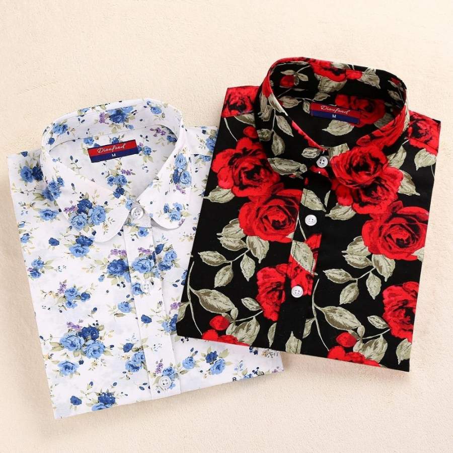 Dioufond Spring Autumn Blouses Women Cotton Shirt Vintage Floral Tops Female Blusas Plus Size Women Clothing Long Sleeve Blouse