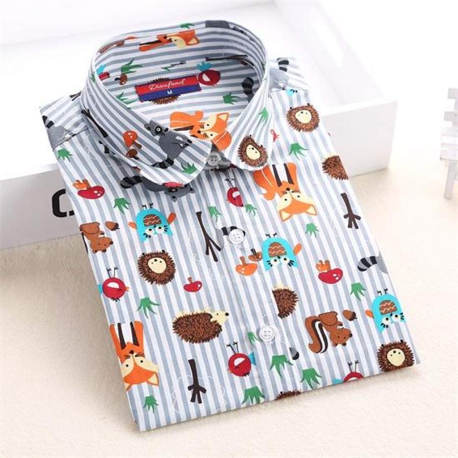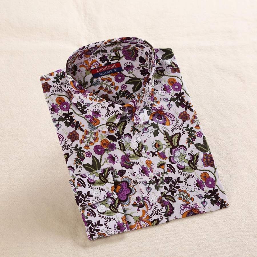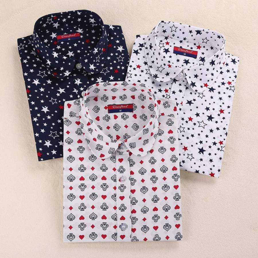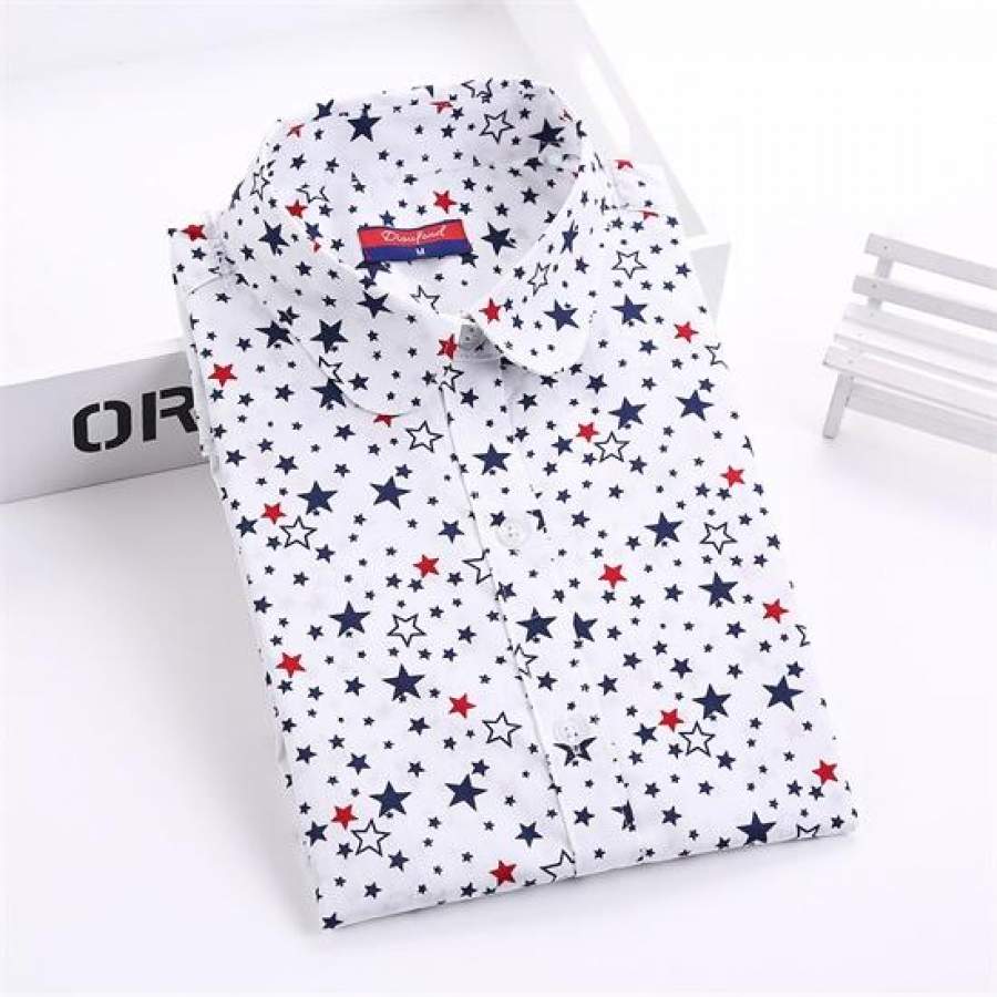 Dioufond Women Blouse Star Print Shirt Long Sleeve Blouse Cotton Casual Shirt Plus Size Shirt Female Clothes Vintage Lady Top