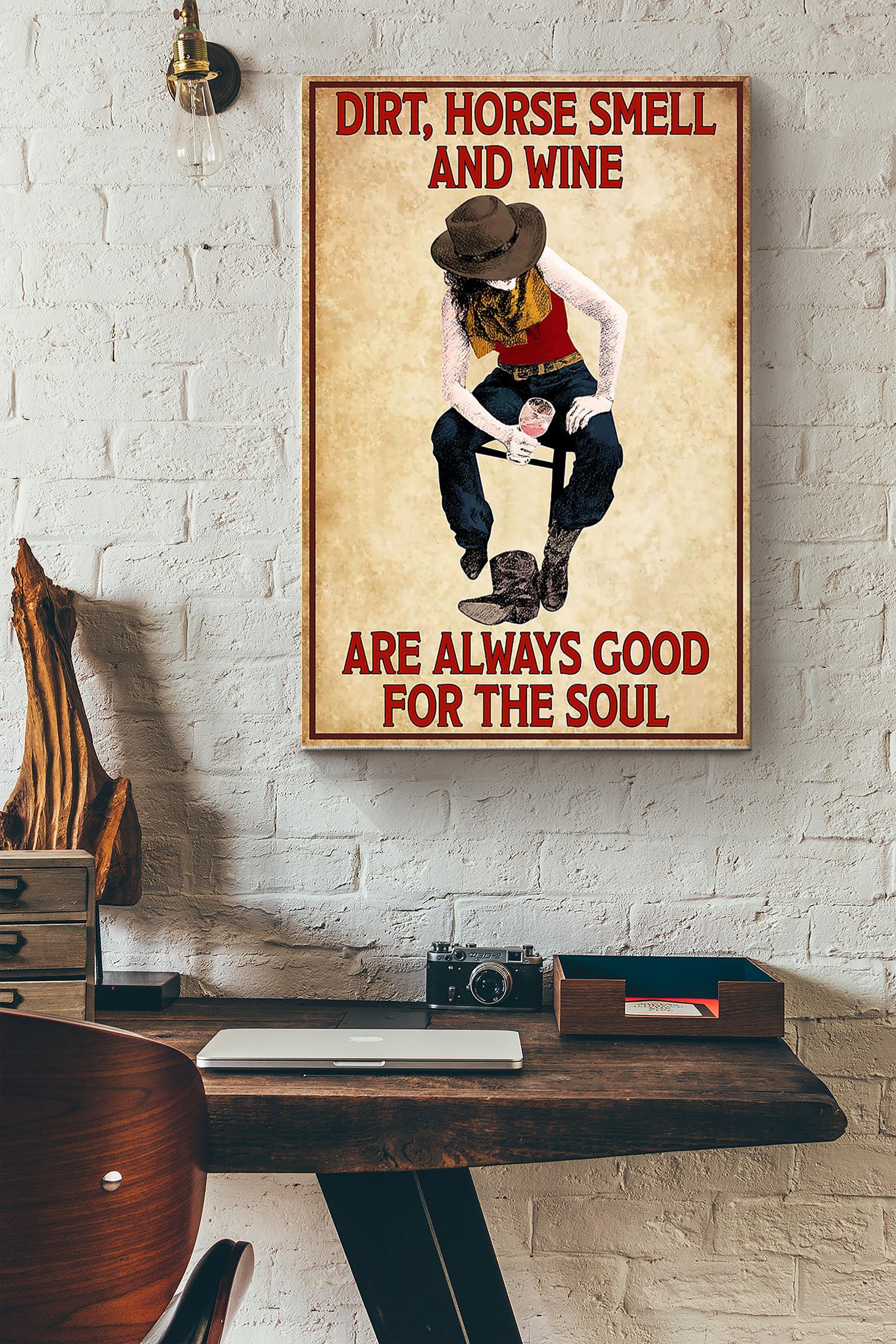 Dirt Horse Smell And Wine Poster – Animal Wall Art – Gift For Horse Lover Horse Rider Cowboy Farmhouse Decor Wrapped Canvas