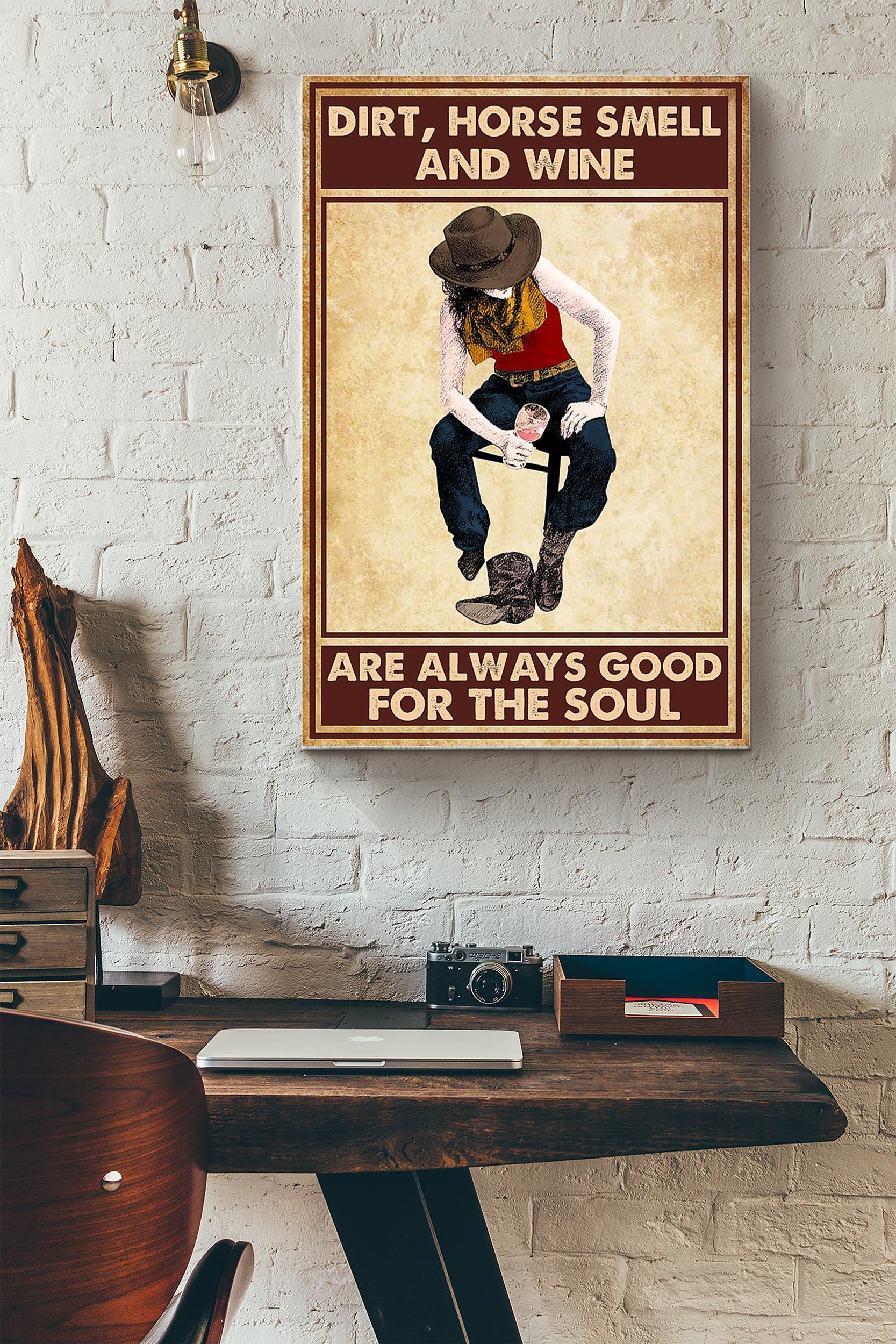 Dirt Horse Smell Wine And Cowgirl Poster – Animal Wall Art – Gift For Horse Lover Horse Rider Cowboy Farmhouse Decor Wrapped Canvas