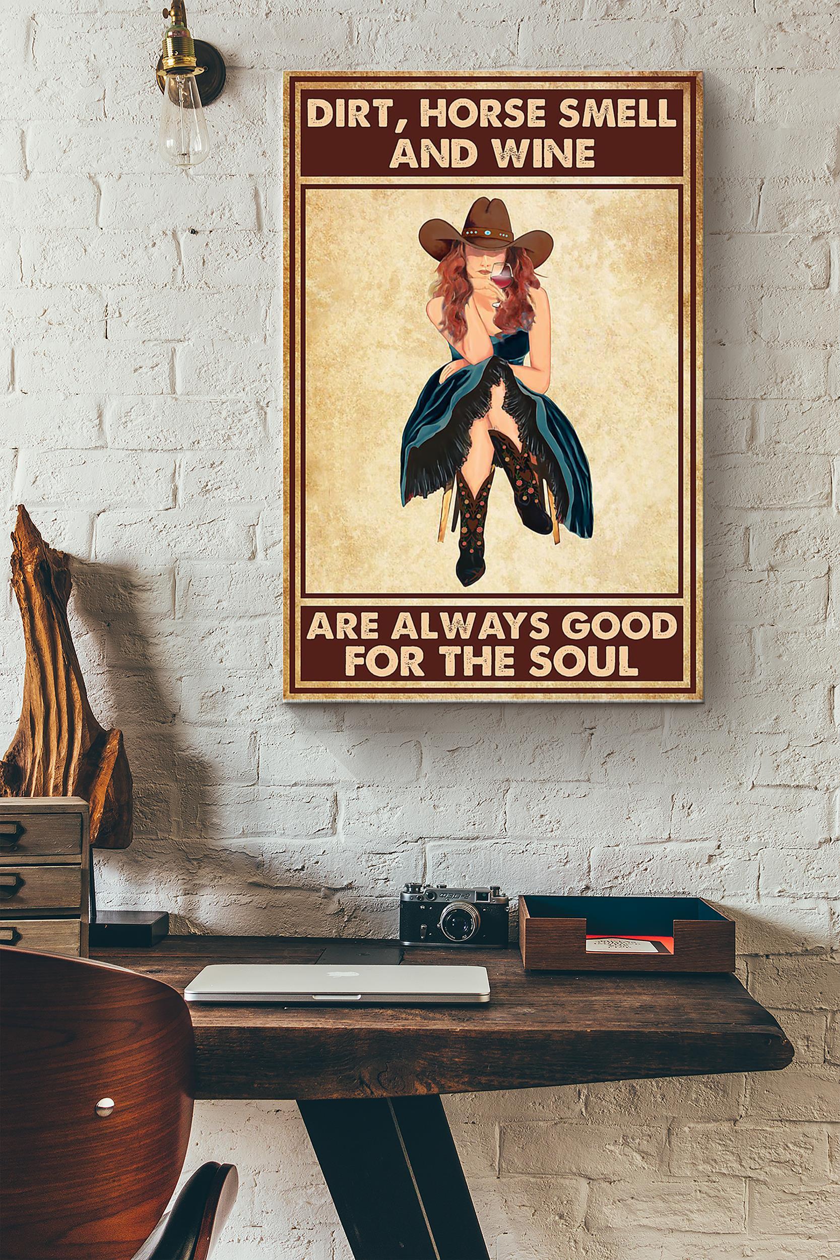 Dirt Horse Smell Wine Cowgirl Poster – Animal Wall Art – Gift For Horse Rider Cowboy Farmhouse Decor Wrapped Canvas