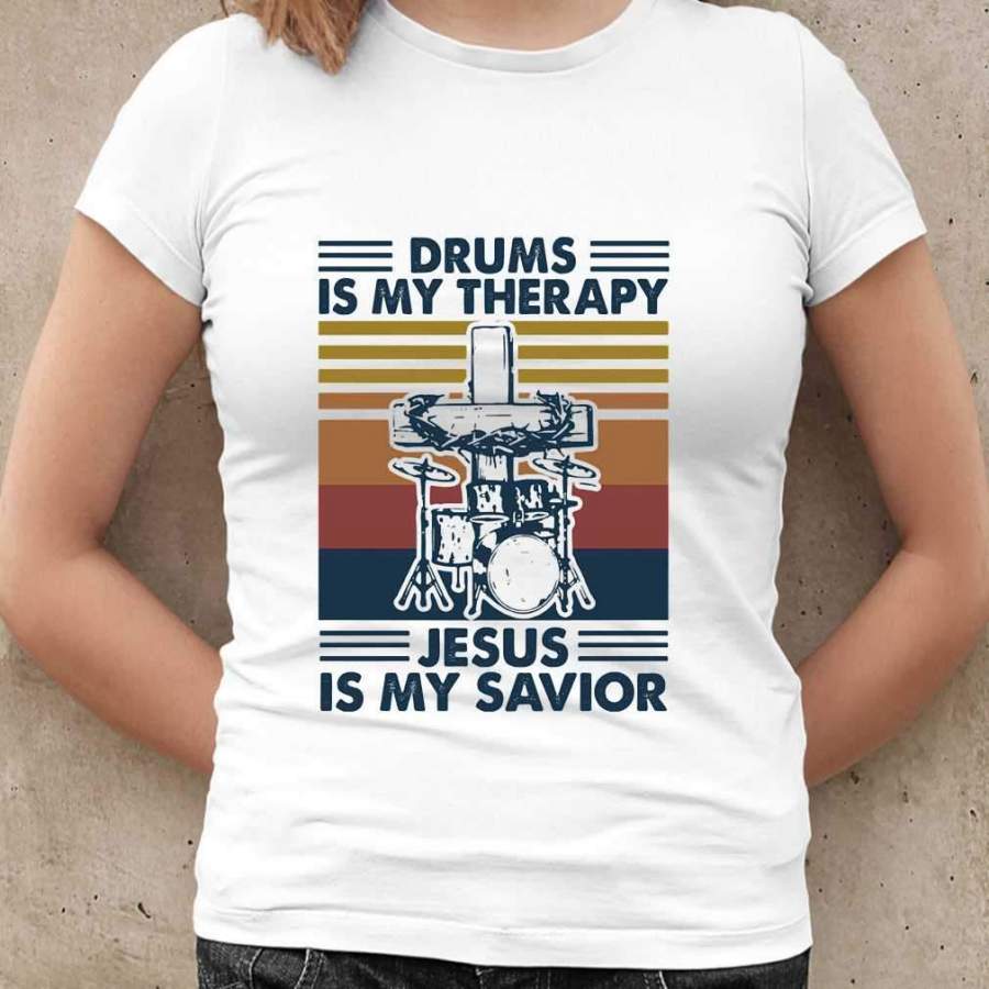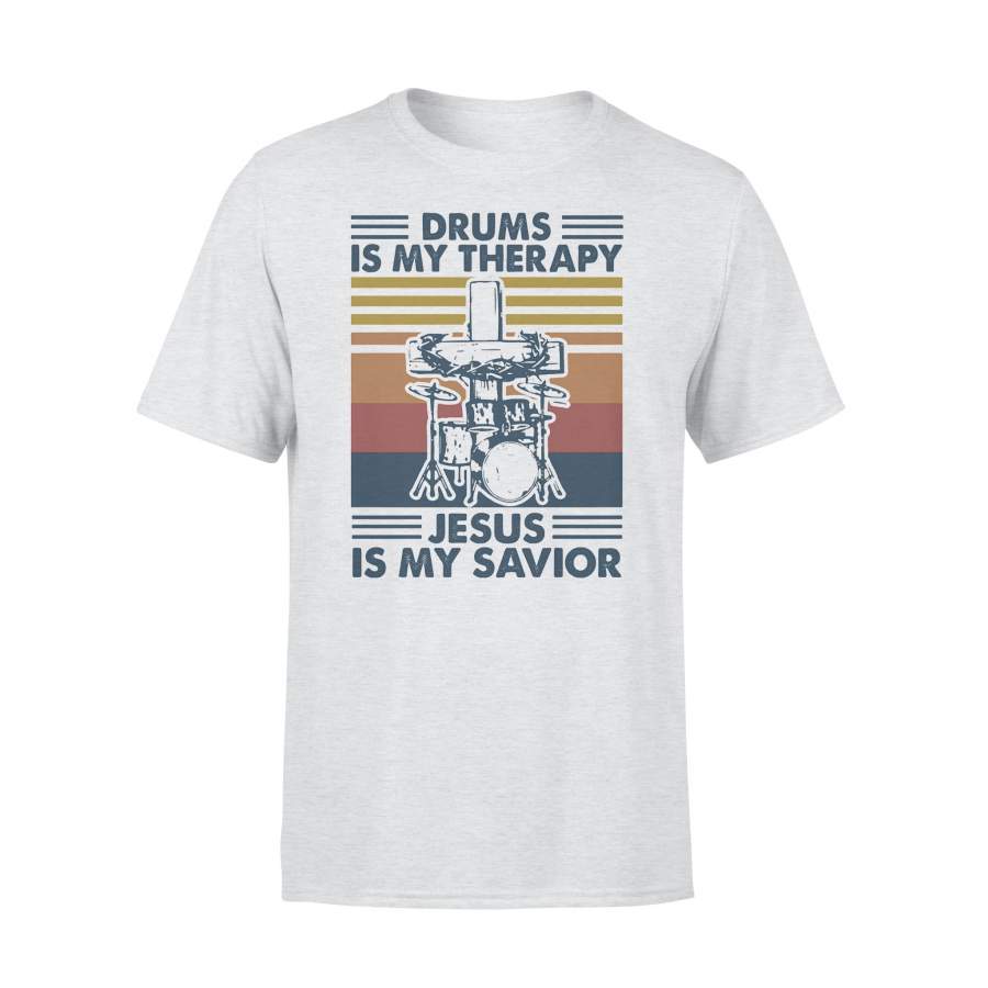 Drums Is My Therapy Jesus Is My Savior Vintage Retro T-shirt