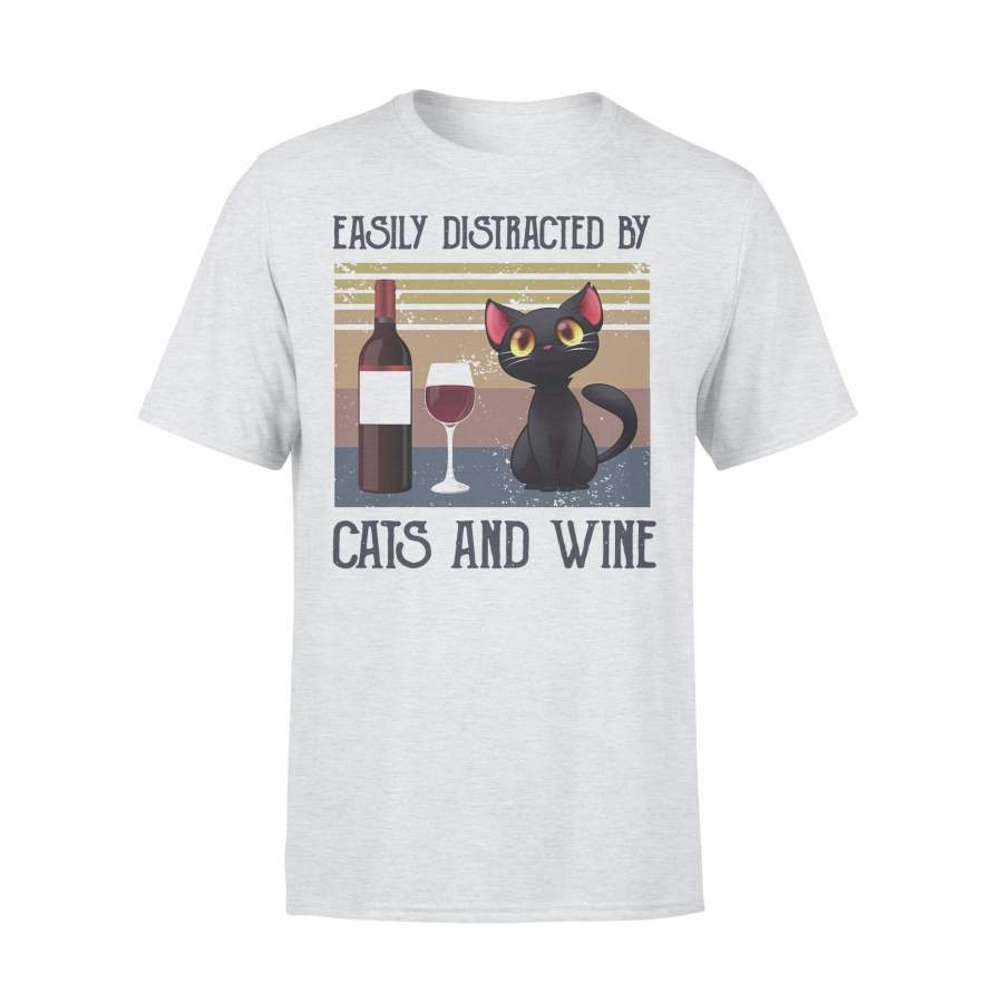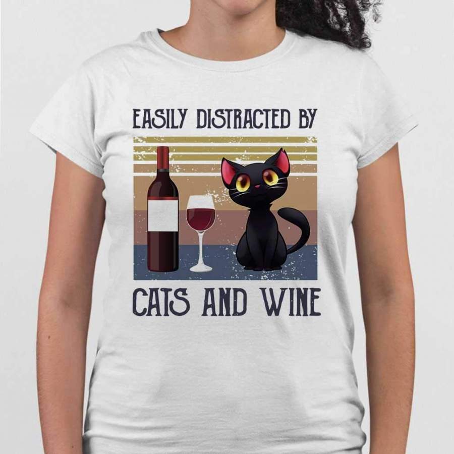 Easily Distracted By Cats And Wine Vintage T-shirt