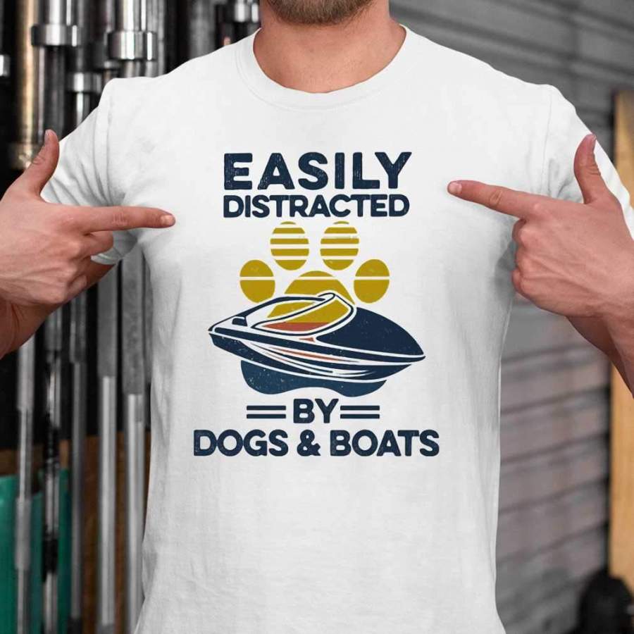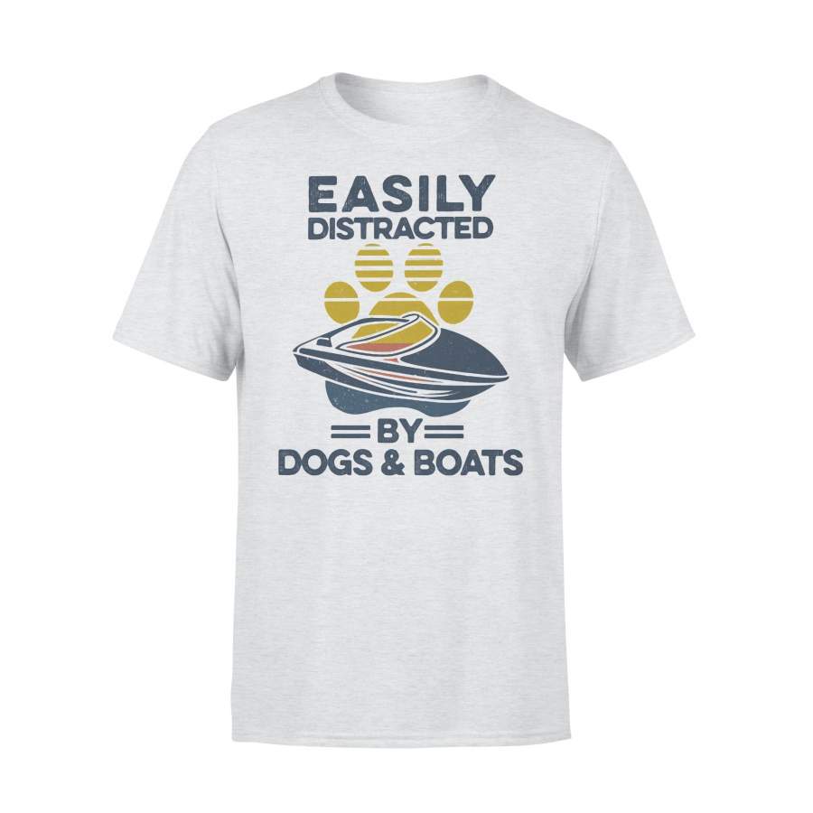 Easily Distracted By Dogs And Boats Footprint Vintage Retro T-shirt