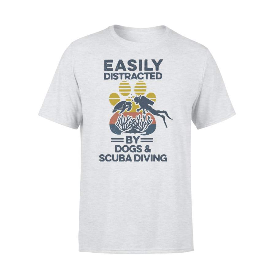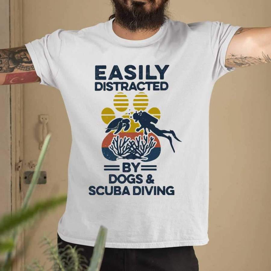Easily Distracted By Dogs And Scuba Diving Footprint Vintage Retro T-shirt