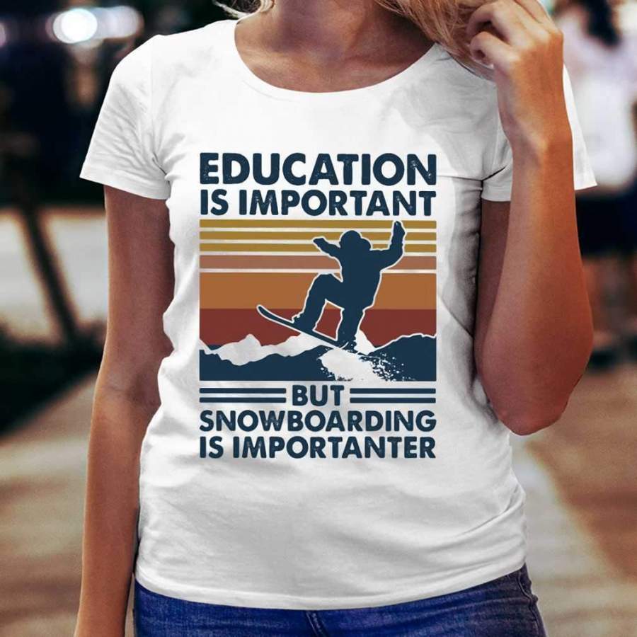 Education Is Important But Snowboarding Is Importanter Vintage Retro T-shirt
