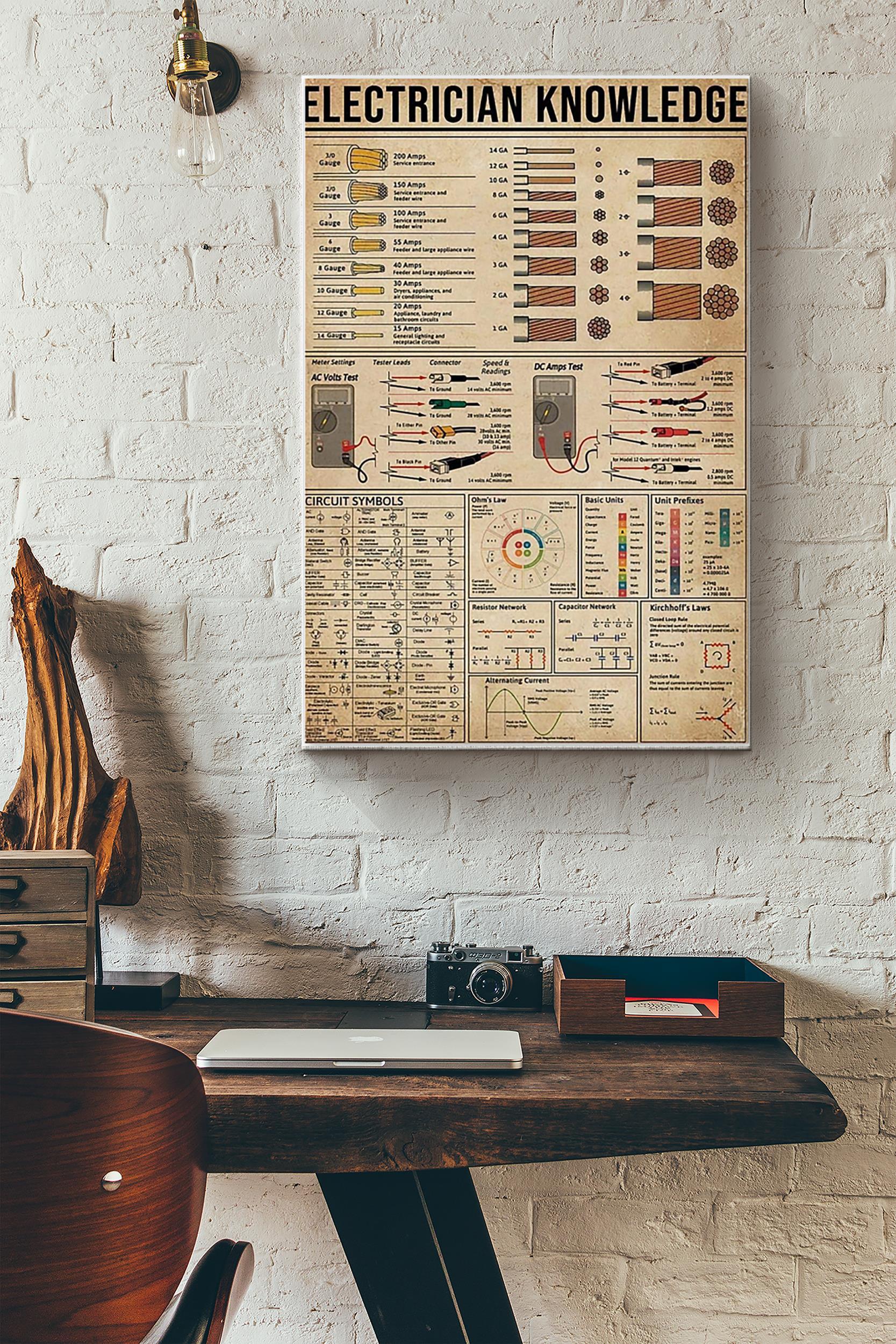 Electrician Knowledge Black-White Satin Poster Wrapped Canvas