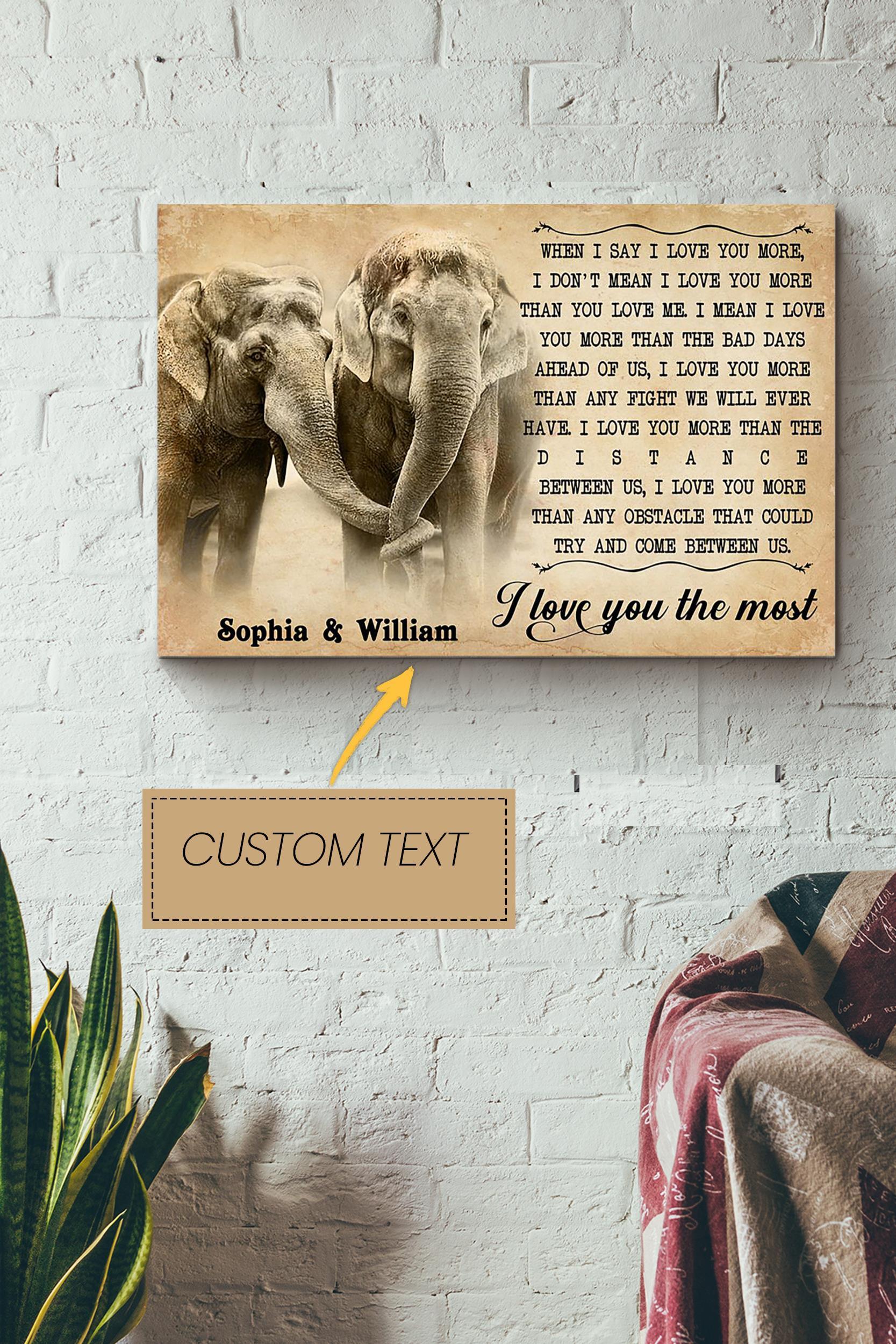 Elephant I Love You The Most Personalized Poster – Animal Wall Art – Gift For Valentine Day Zoo Decor Elephant Lover Wrapped Canvas