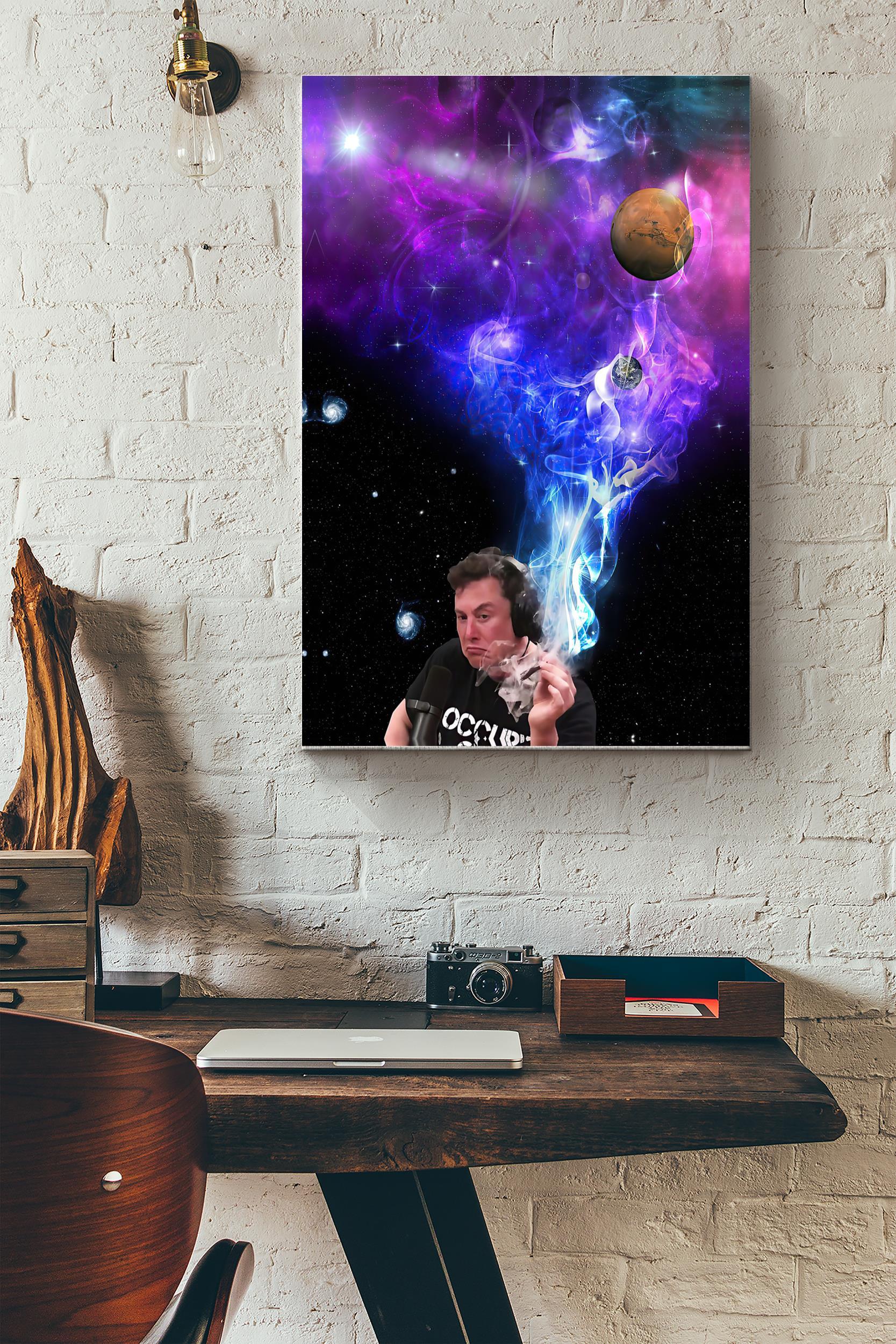 Elon Musk Smoking Poster – Meme Wall Art – Gift For Elon Musk Fan, Smoker Wrapped Canvas