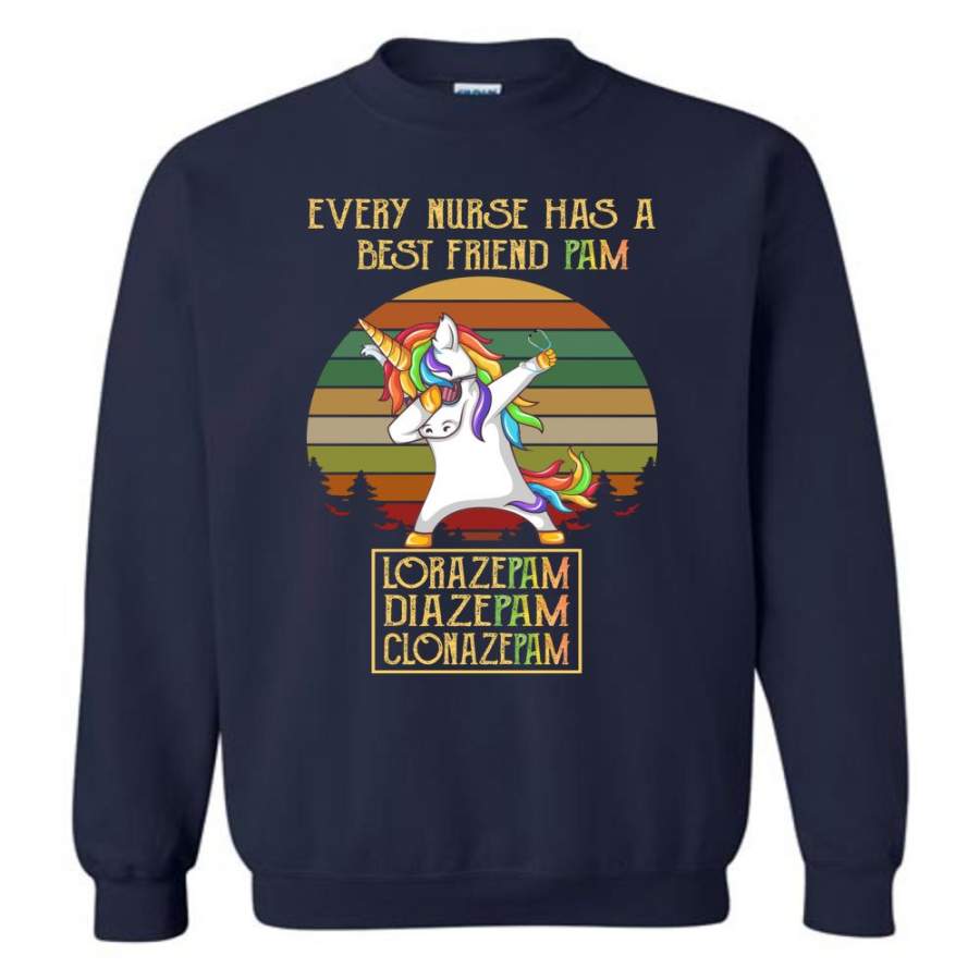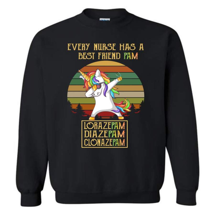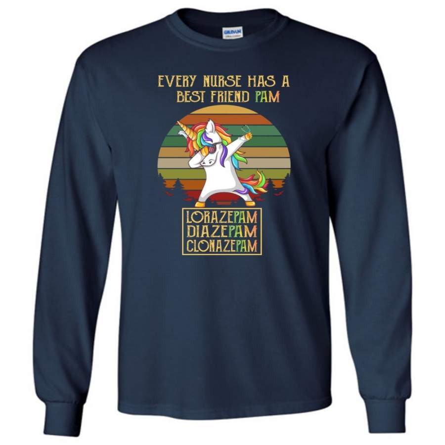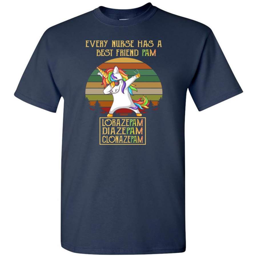 Every Nurse Has A Best Friend PAM Vintage Unicorn Tee shirt
