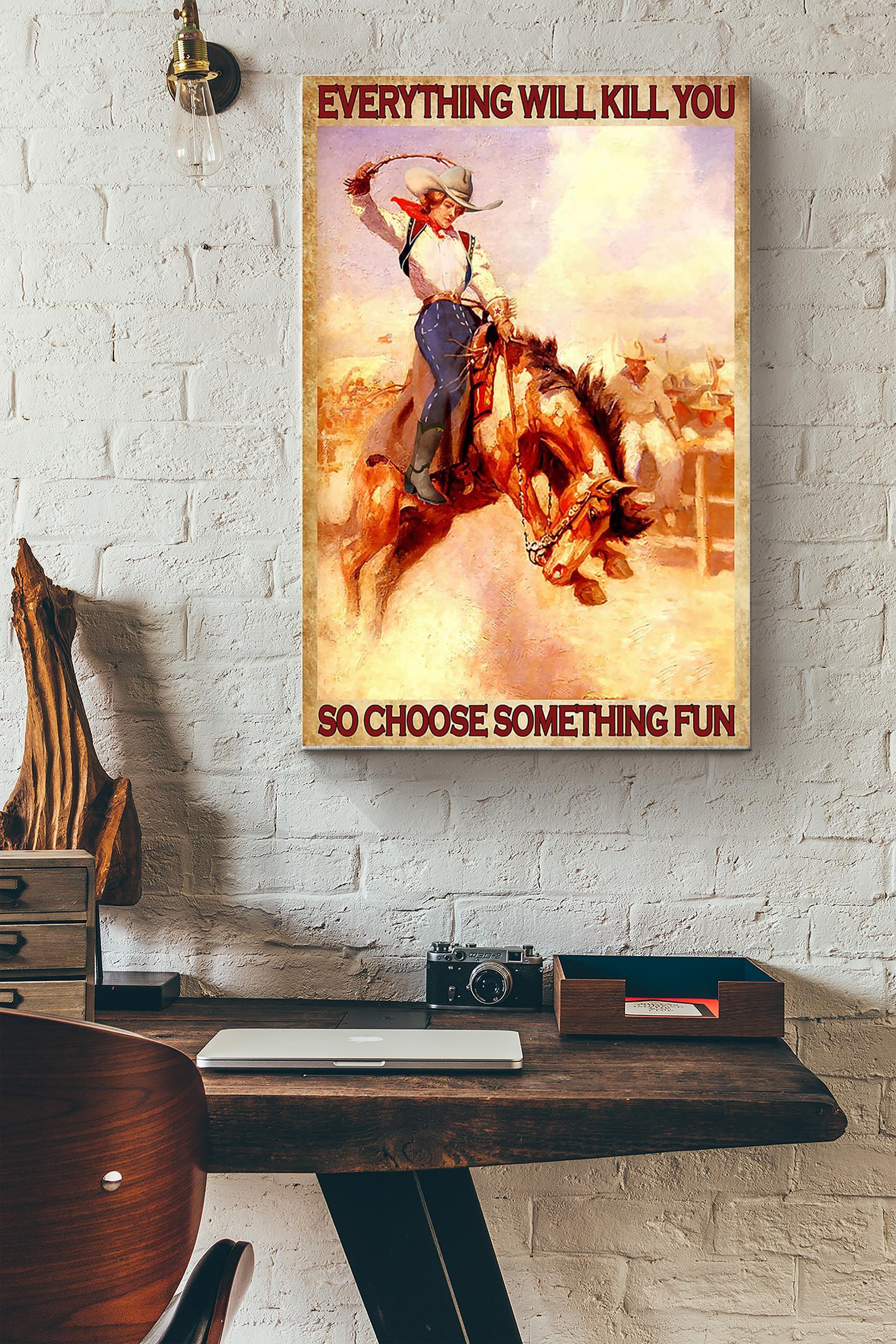 Everything Will Kill You Choose Something Fun Poster – Animal Wall Art – Gift For Horse Lover Horse Rider Cowboy Farmhouse Decor (2) Wrapped Canvas