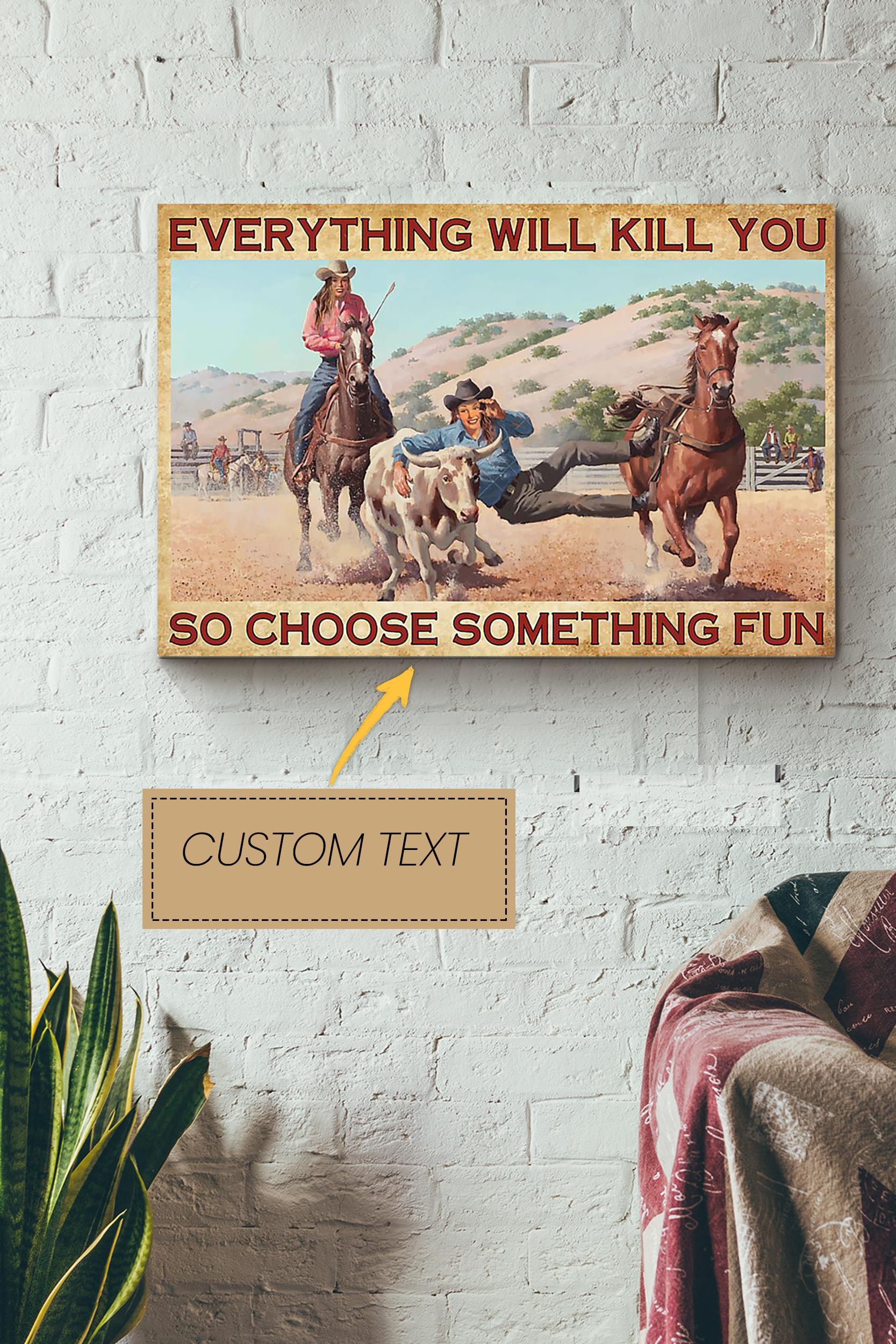 Everything Will Kill You Fun Cowgirl Poster – Animal Wall Art – Gift For Horse Rider Cowboy Farmhouse Decor Wrapped Canvas