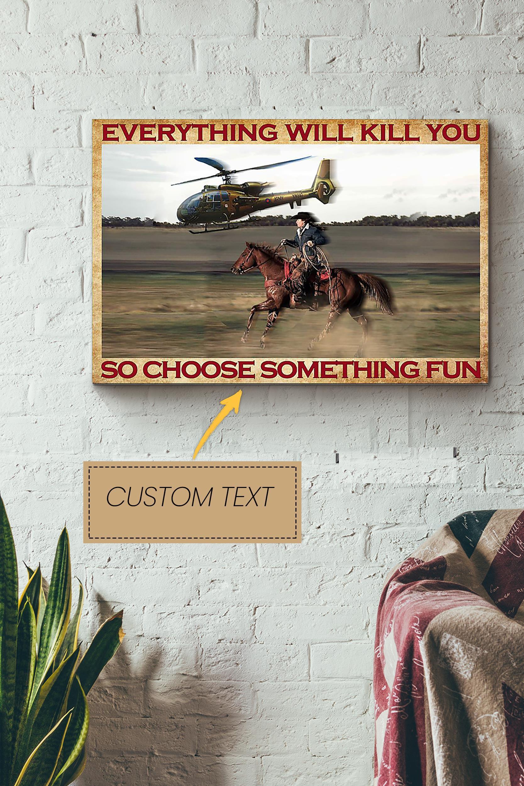 Everything Will Kill You Poster – Animal Wall Art – Gift For Horse Rider Cowboy Farmhouse Decor Wrapped Canvas