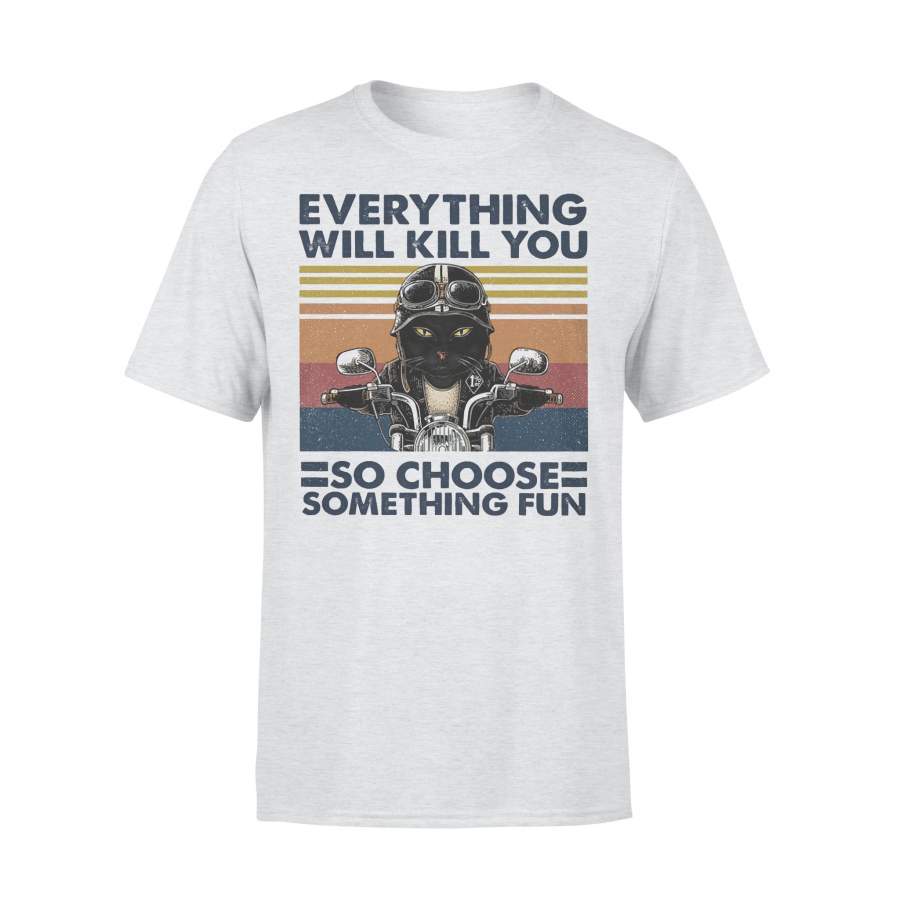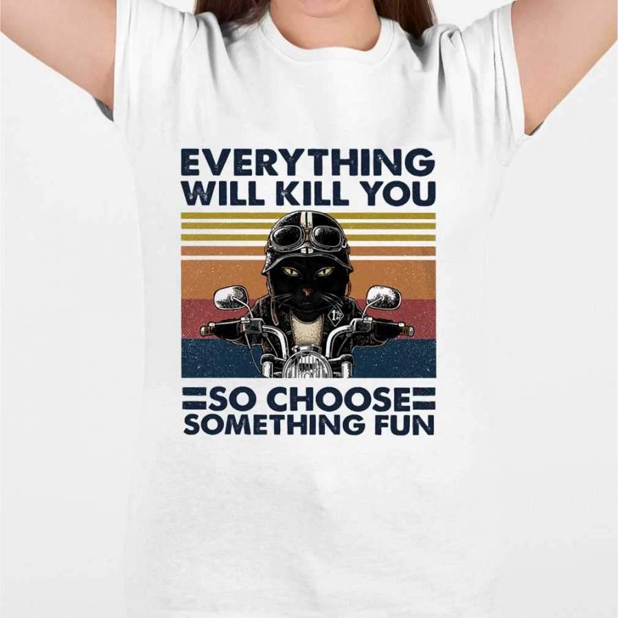 Everything Will Kill You So Choose Something Fun Biker Cat Lovers Vintage Retro T-shirt