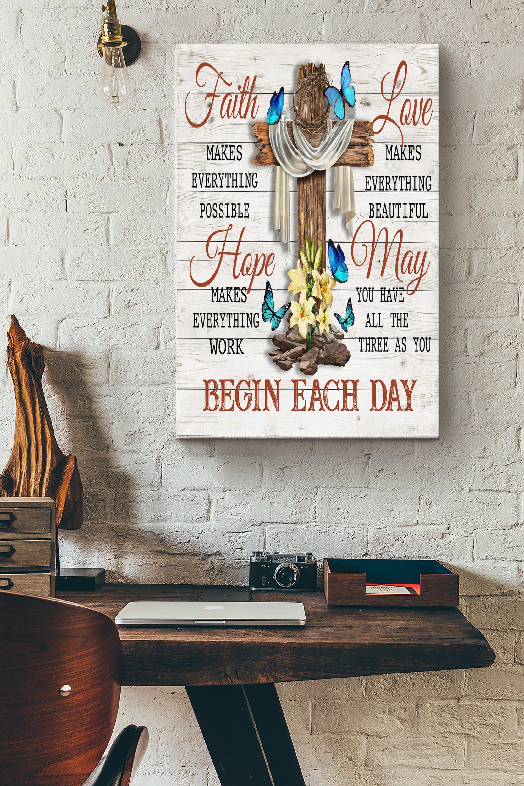 Faith And Love Begin Each Day Poster – Quote Wall Art – Gift For Religious People God Worshiper Downmoods Girl Sad Girls Butterfly Lover Friends House Decor Wrapped Canvas