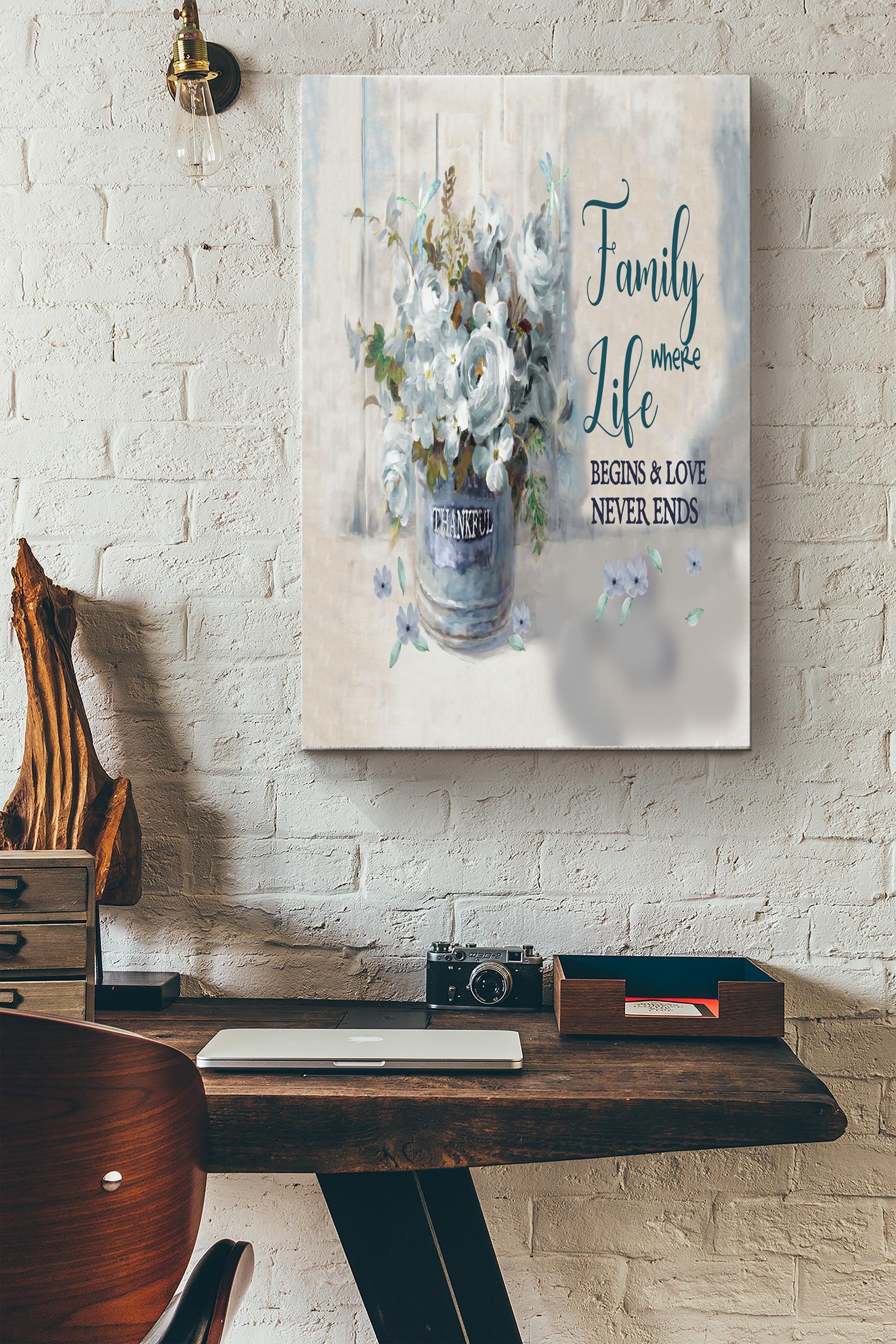 Family Where Life Begins Poster – Family Wall Art – Gift For Family Relatives Grandpa Grandma International Day Of Happiness Cousin Daughter Son Father Mother Wrapped Canvas