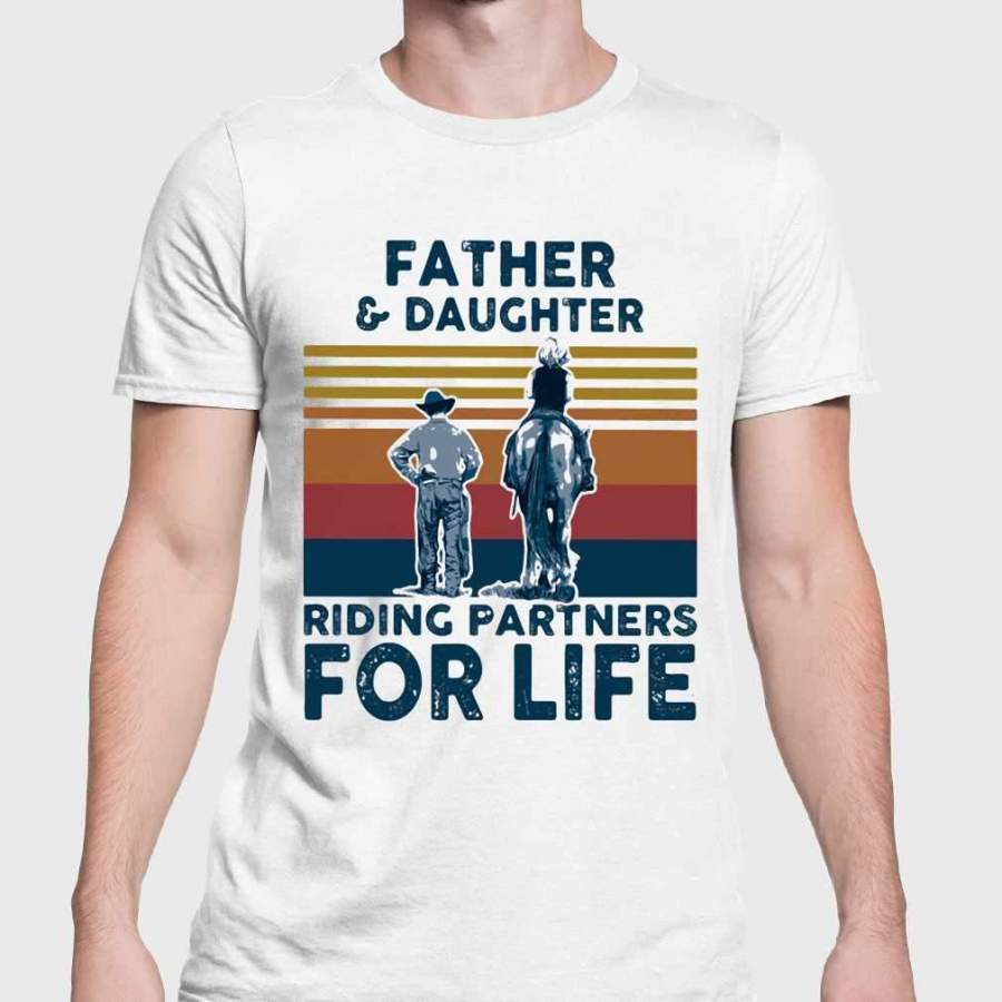 Father And Daughter Riding Horse Partners For Life Vintage Retro T-shirt