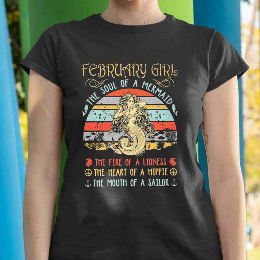 February Girl The Soul Of A Mermaid The Fire Of A Lioness The Heart Of Hippie The Mouth Of A Sailor Vintage T-shirt