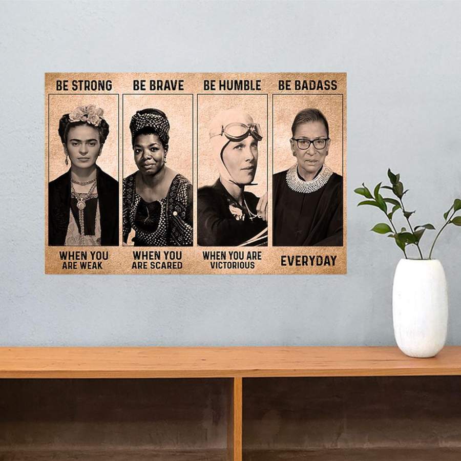 Feminist Be Strong Be Brave Be Humble Be Badass Poster RBG Frida Kahlo Feminism Wall Art Decor