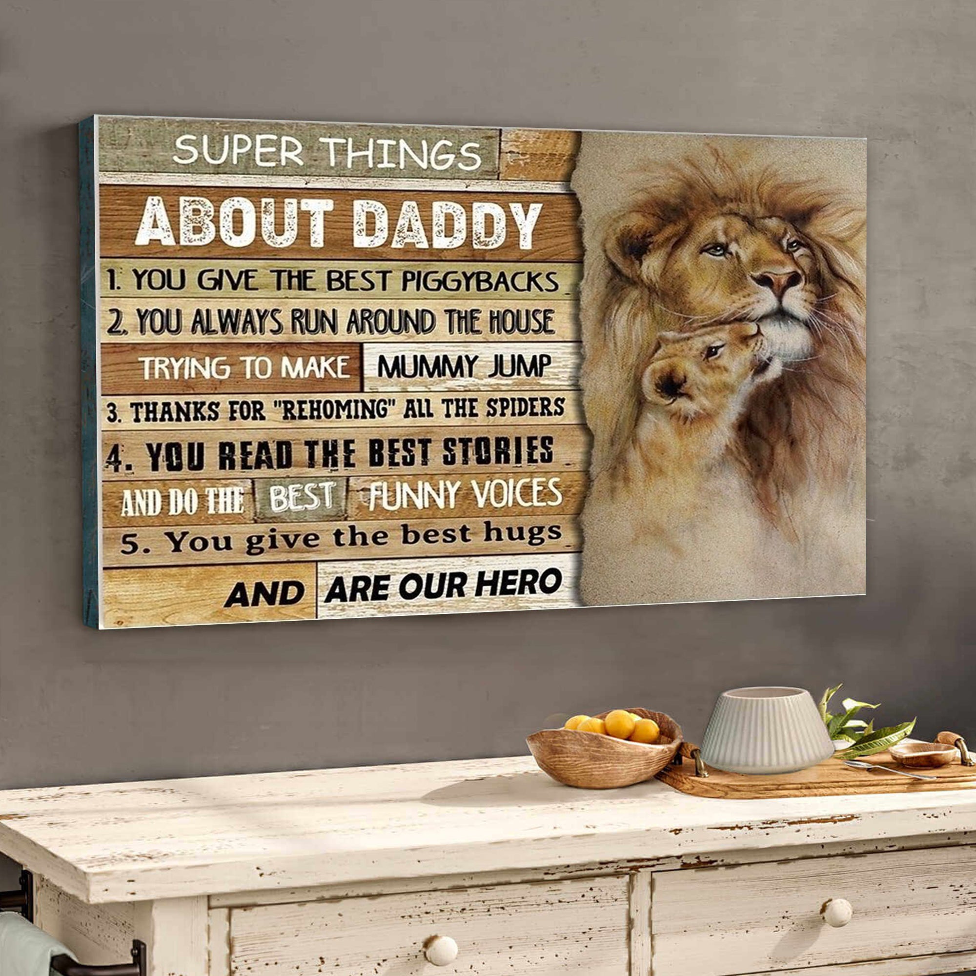 Gift For Dad – Super Things About Daddy Hero Lion Dad | Poster | Father’S Day Gift | Wall Decor