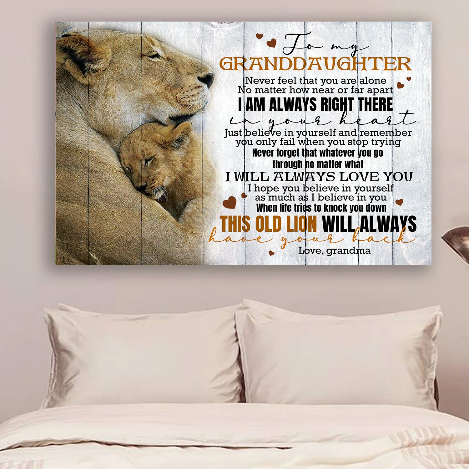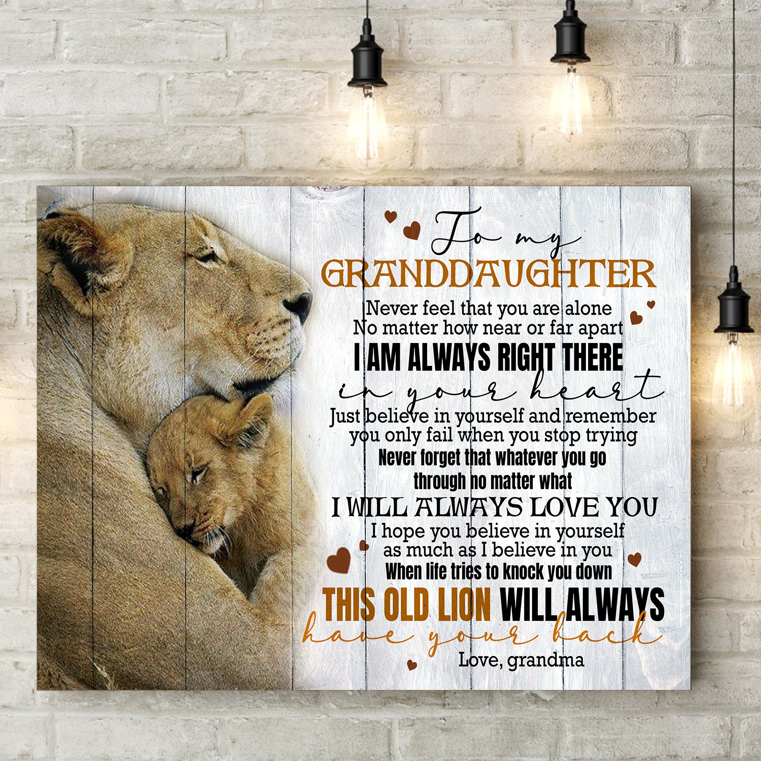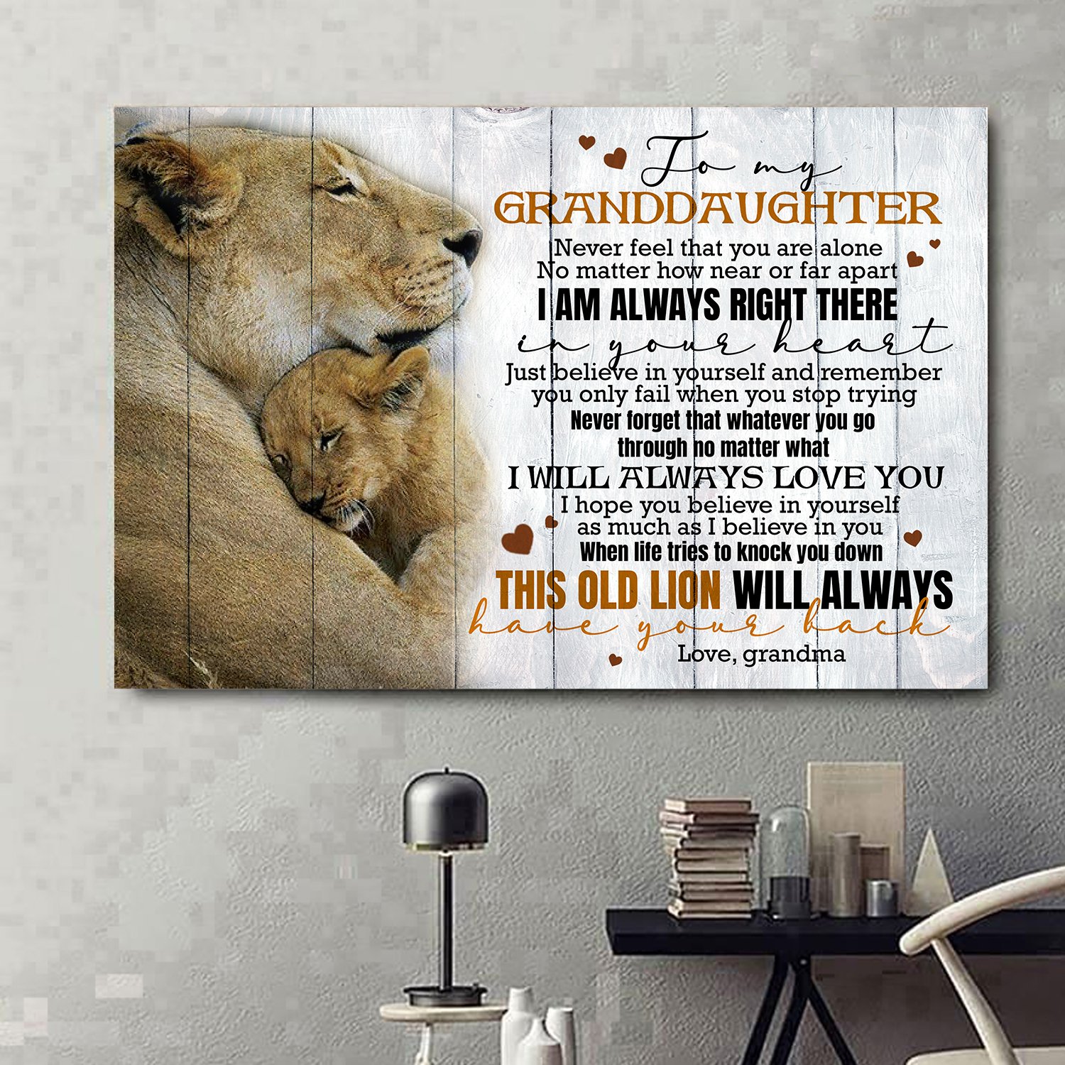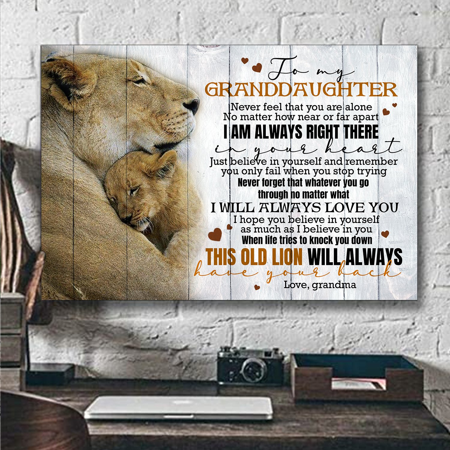 Gifts For Granddaughter – Lion – I Am Always Right There In Your Heart. Just Believe In Yourself And Remember You Only Fail When You Stop Trying Poster