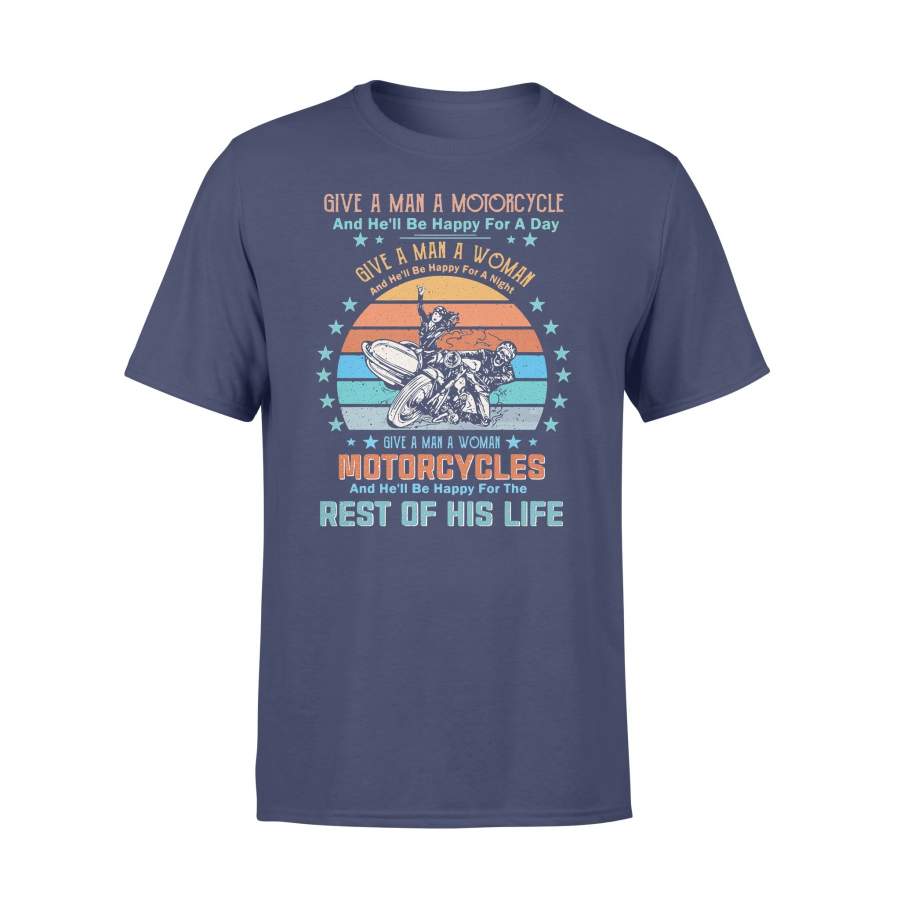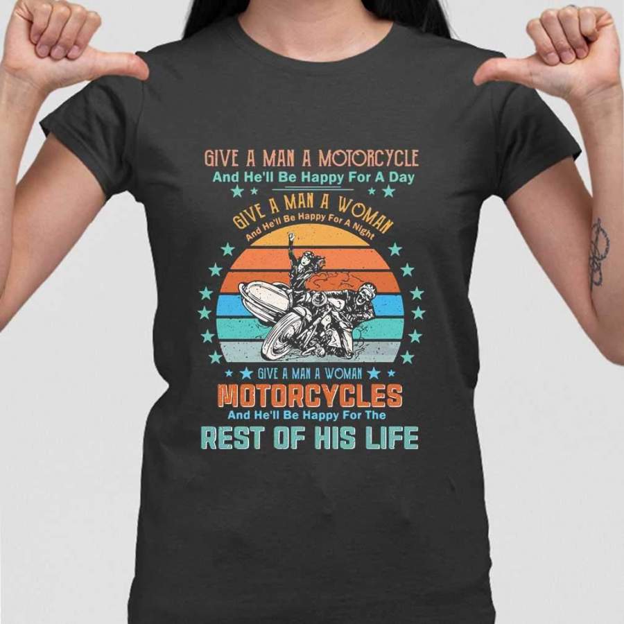 Give A Man A Woman Motorcycles And He’ll Be Happy For A Day Rest Of His Life Vintage Retro T-shirt