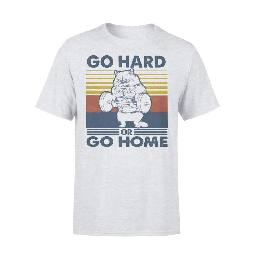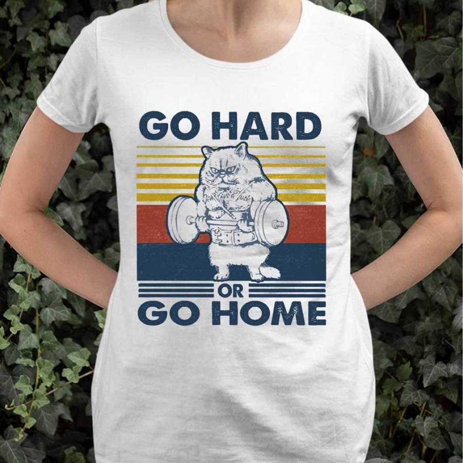 Go Hard Or Go Home Fitness Cat Vintage Retro T-shirt