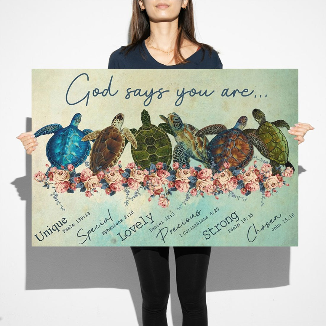 God Says You Are Poster | Colorful Turtle Breeds And Flowers Poster