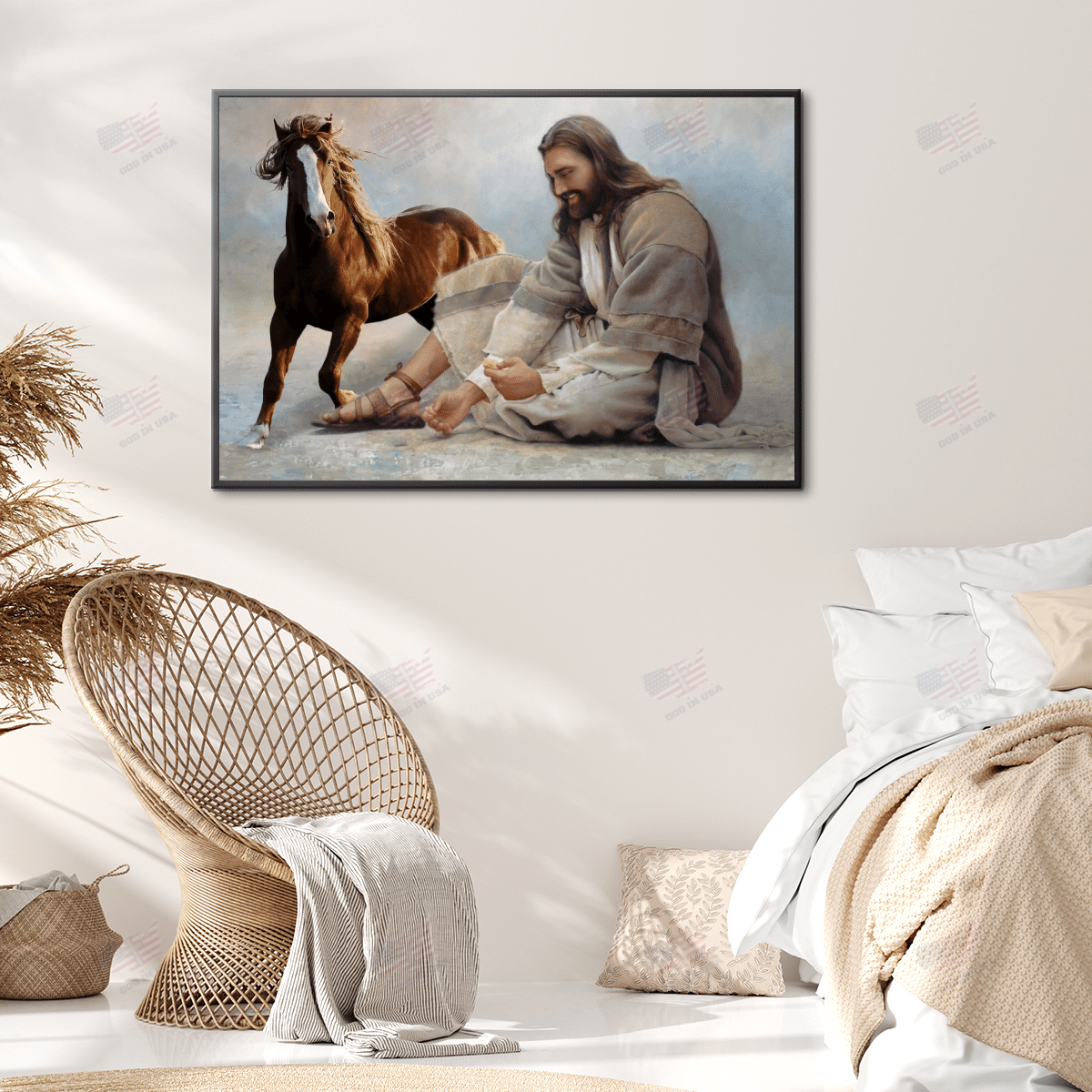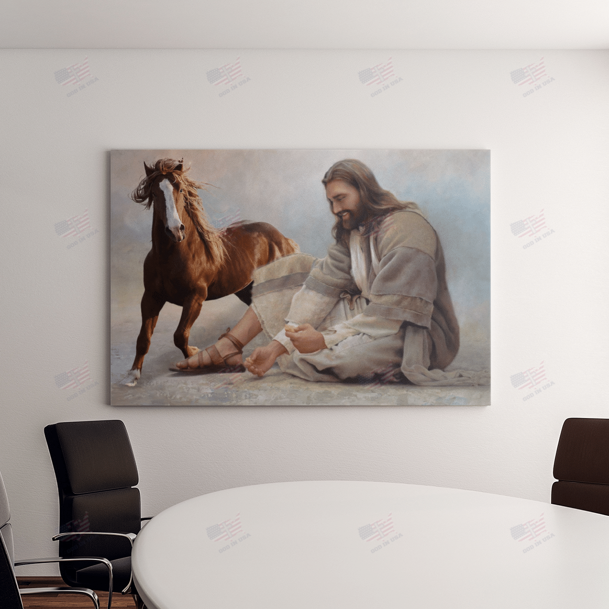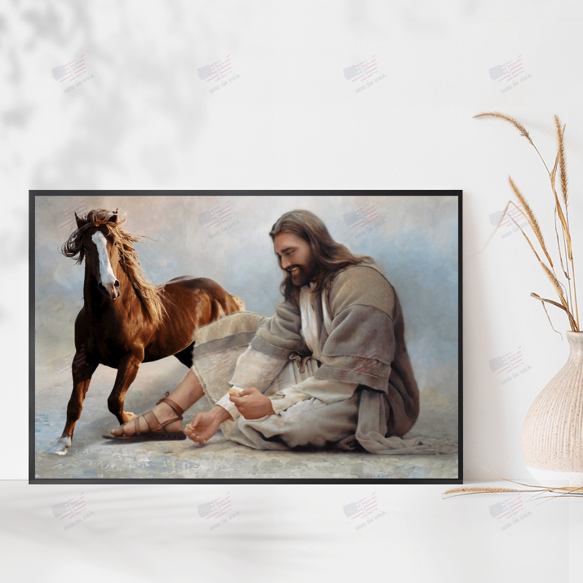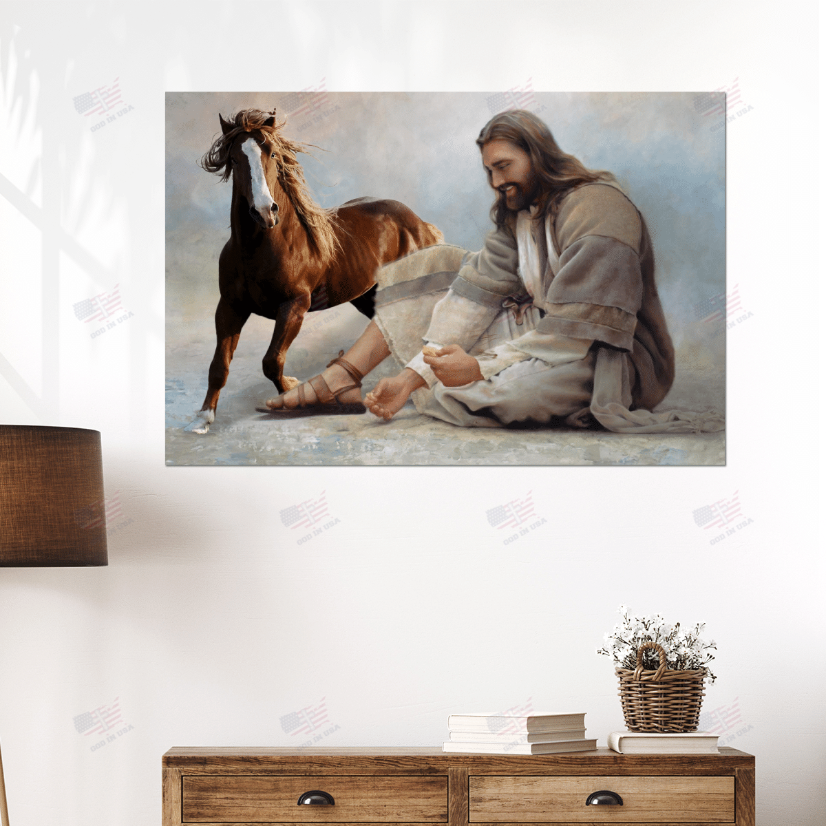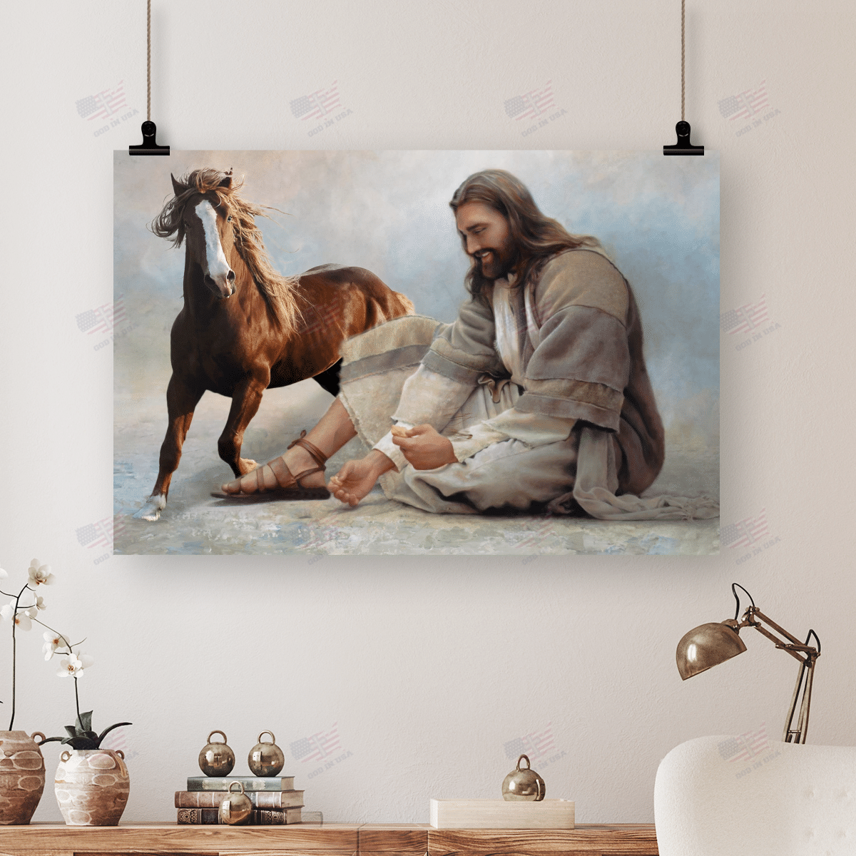 God Surrounded By Horse 2 Angels Poster Canvas