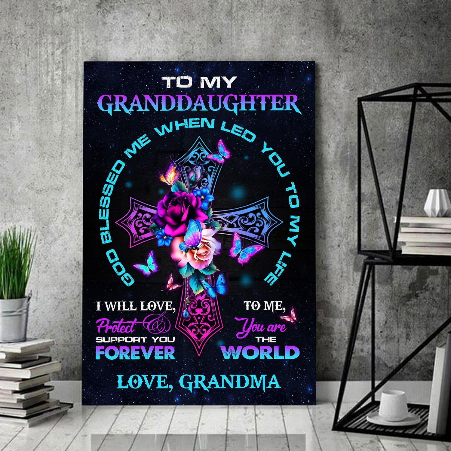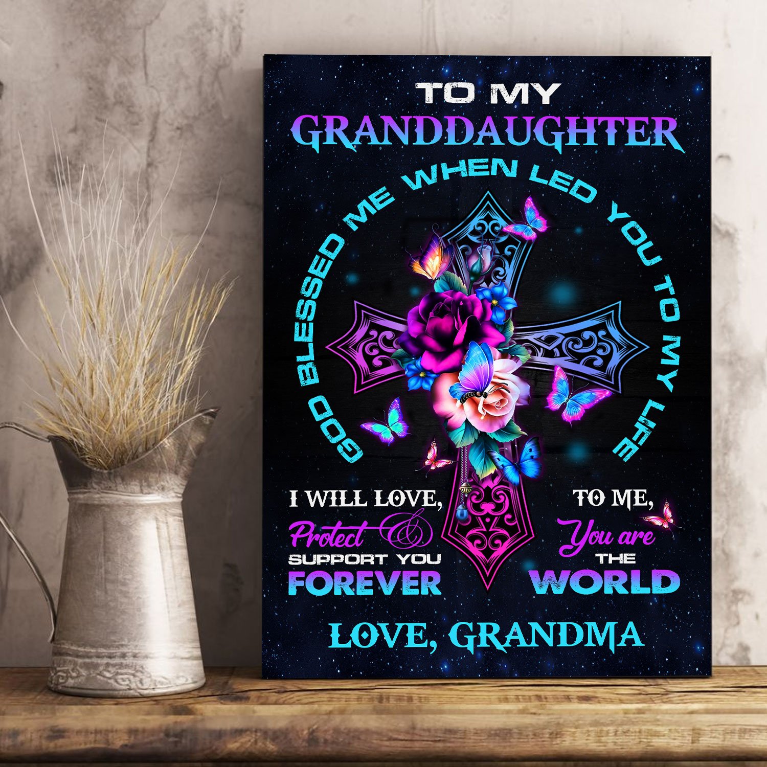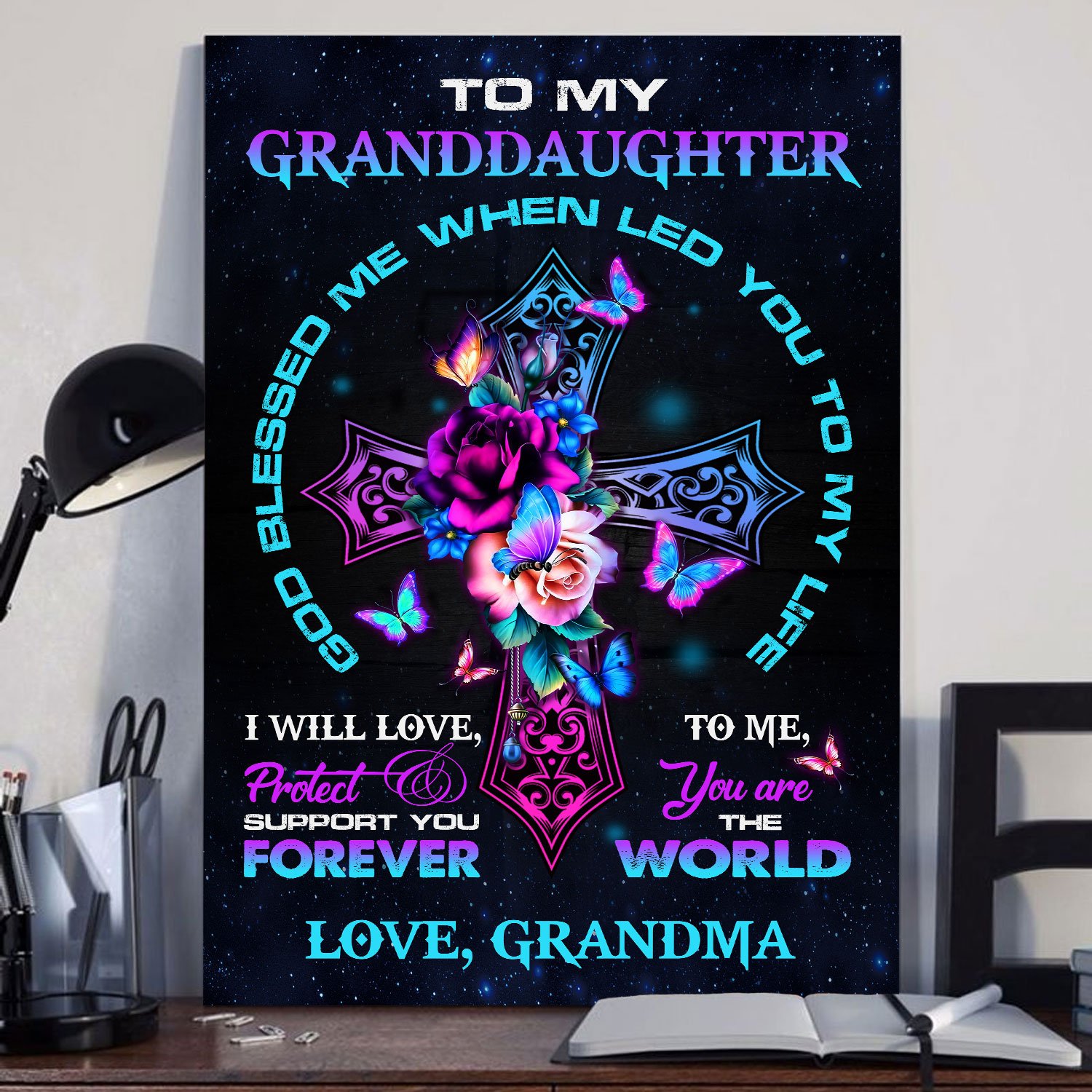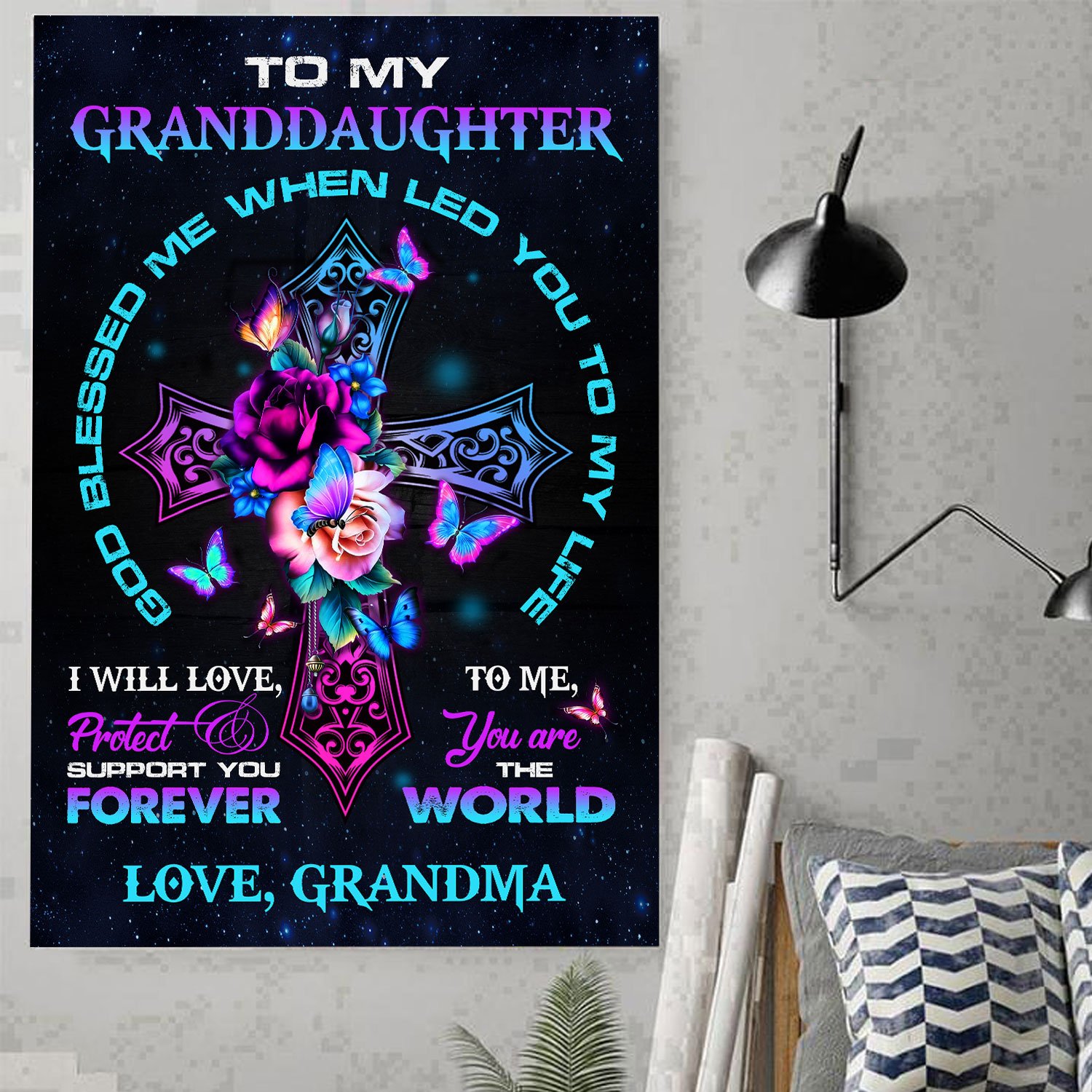 Granddaughter Gifts – Butterfly & Rose – God Blessed Me When Led You To My Life I Will Love, Protect & Support You Forever, To Me You Are The World Poster