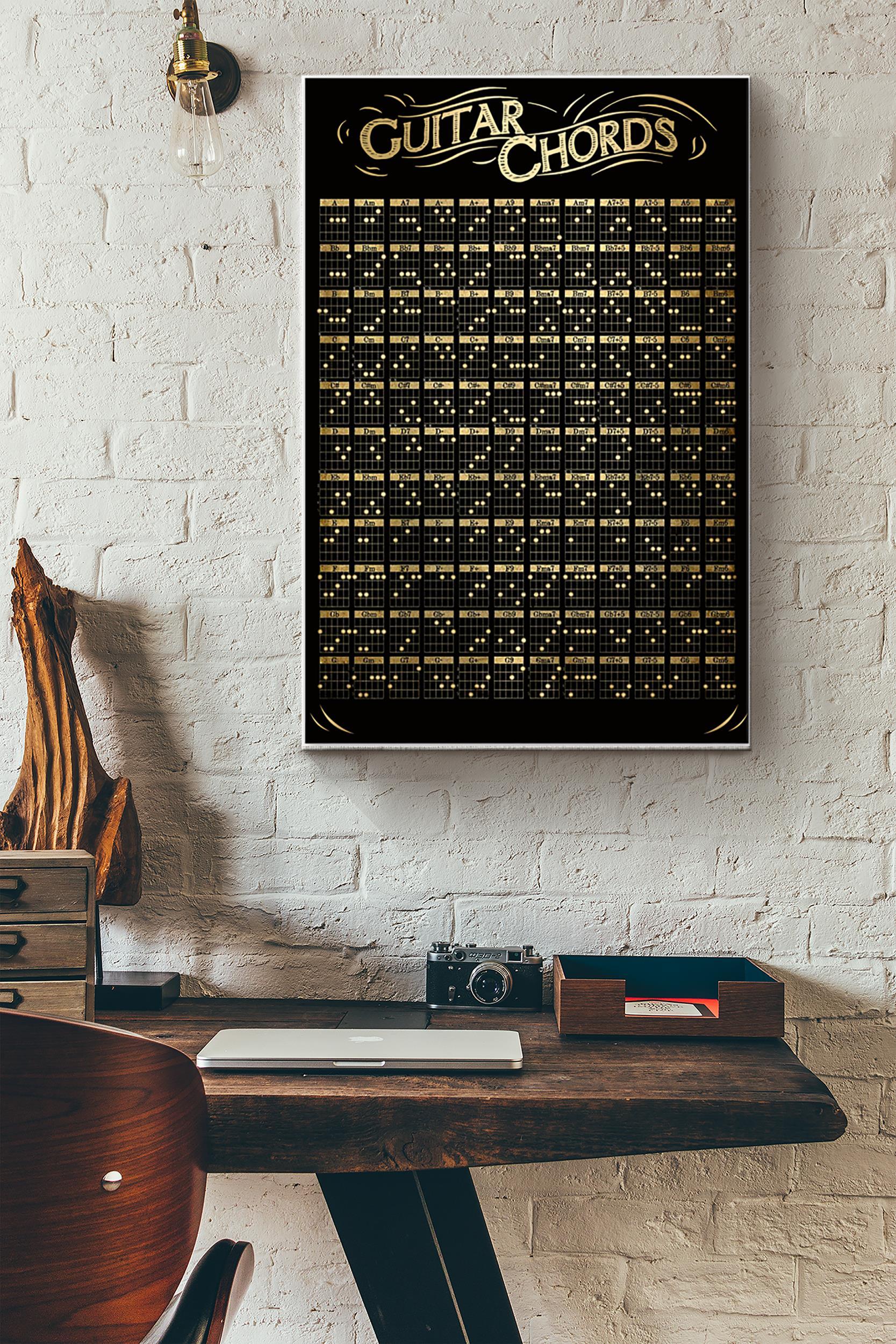 Guitar Chords Poster Black White Satin Poster Wrapped Canvas