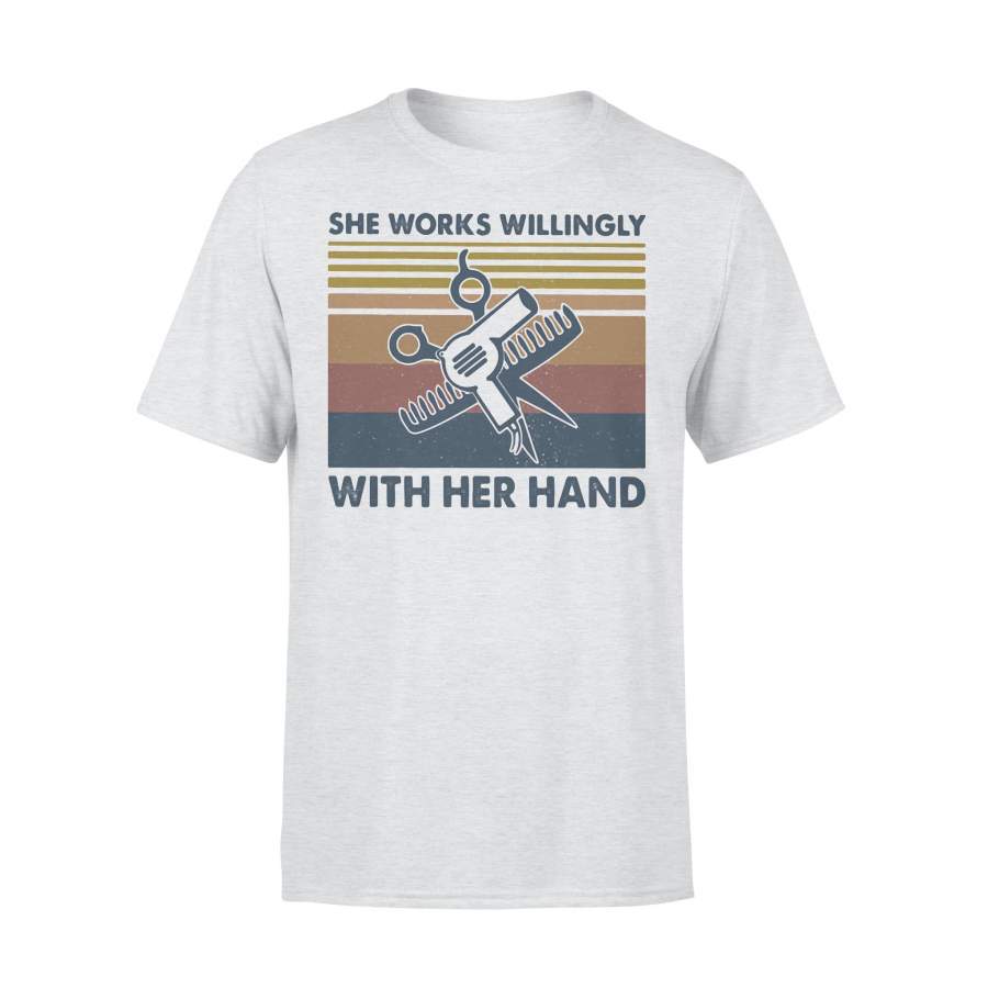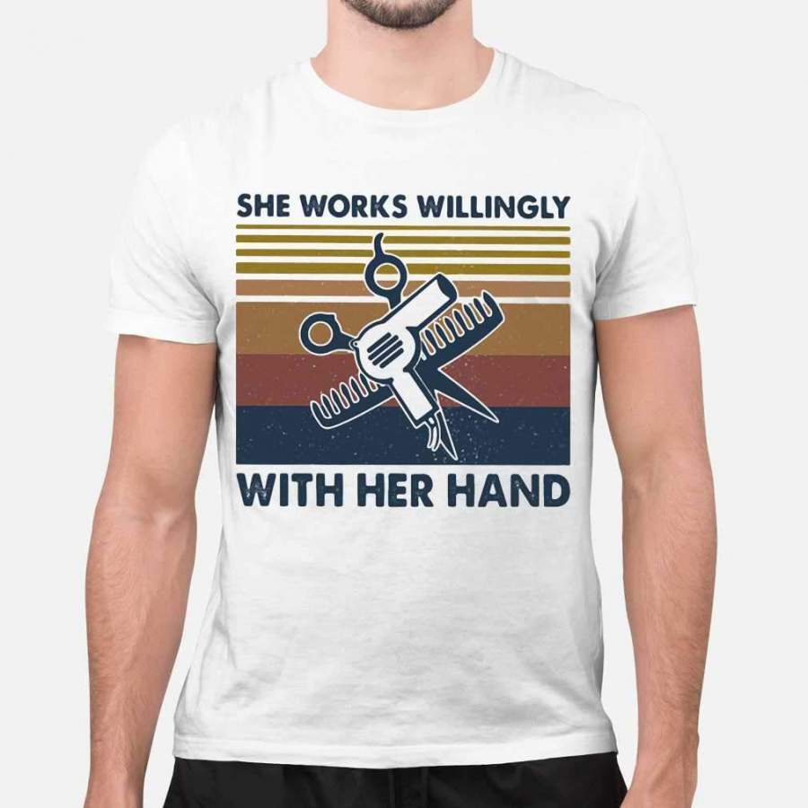 Hairstylist She Works Willingly With Her Hand Vintage Retro T-shirt