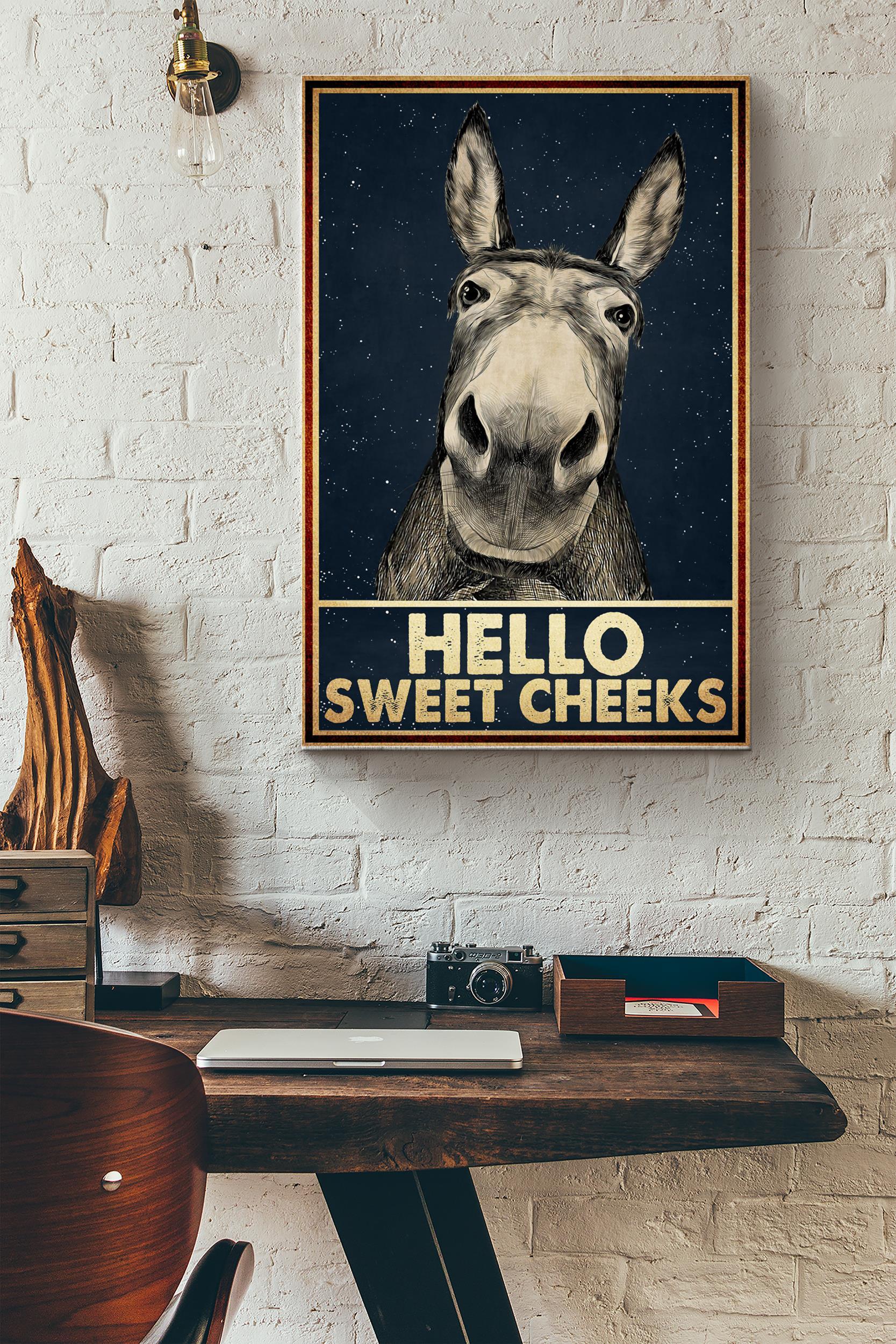 Hello Sweet Cheeks Poster – Animal Wall Art – Gift For Farmhouse Decor, Donkey Lover Wrapped Canvas