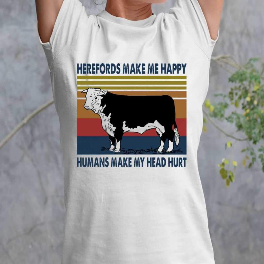 Herefords Make Me Happy Humans Make My Head Hurt Farm Vintage T-shirt