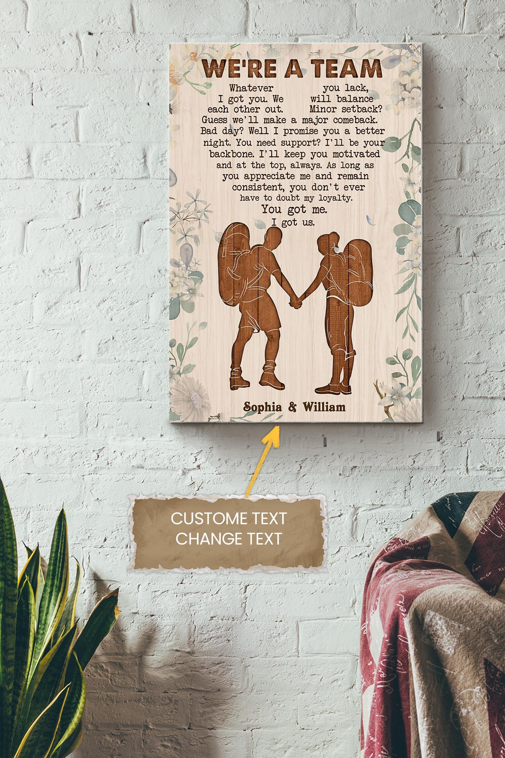 Hiking We’Re A Team Personalized Poster – Love Wall Art – Gift For Valentine Day Lover Crush Wrapped Canvas