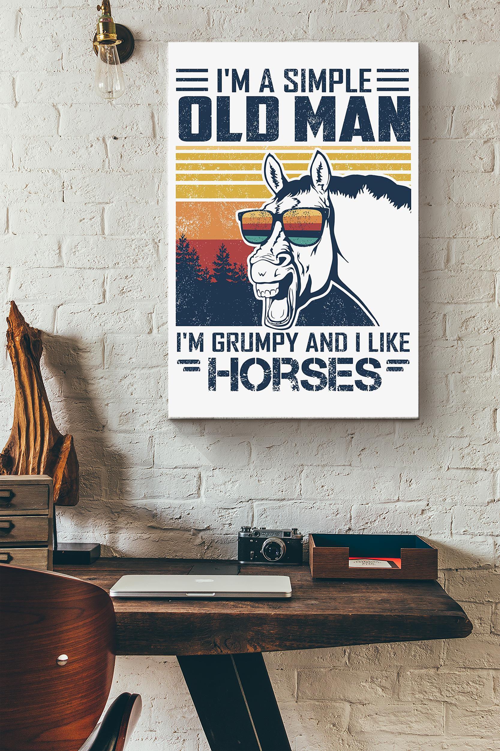 Horse A Simple Old Man Horse Lovers Poster – Animal Wall Art – Gift For Horse Rider Cowboy Farmhouse Decor Wrapped Canvas