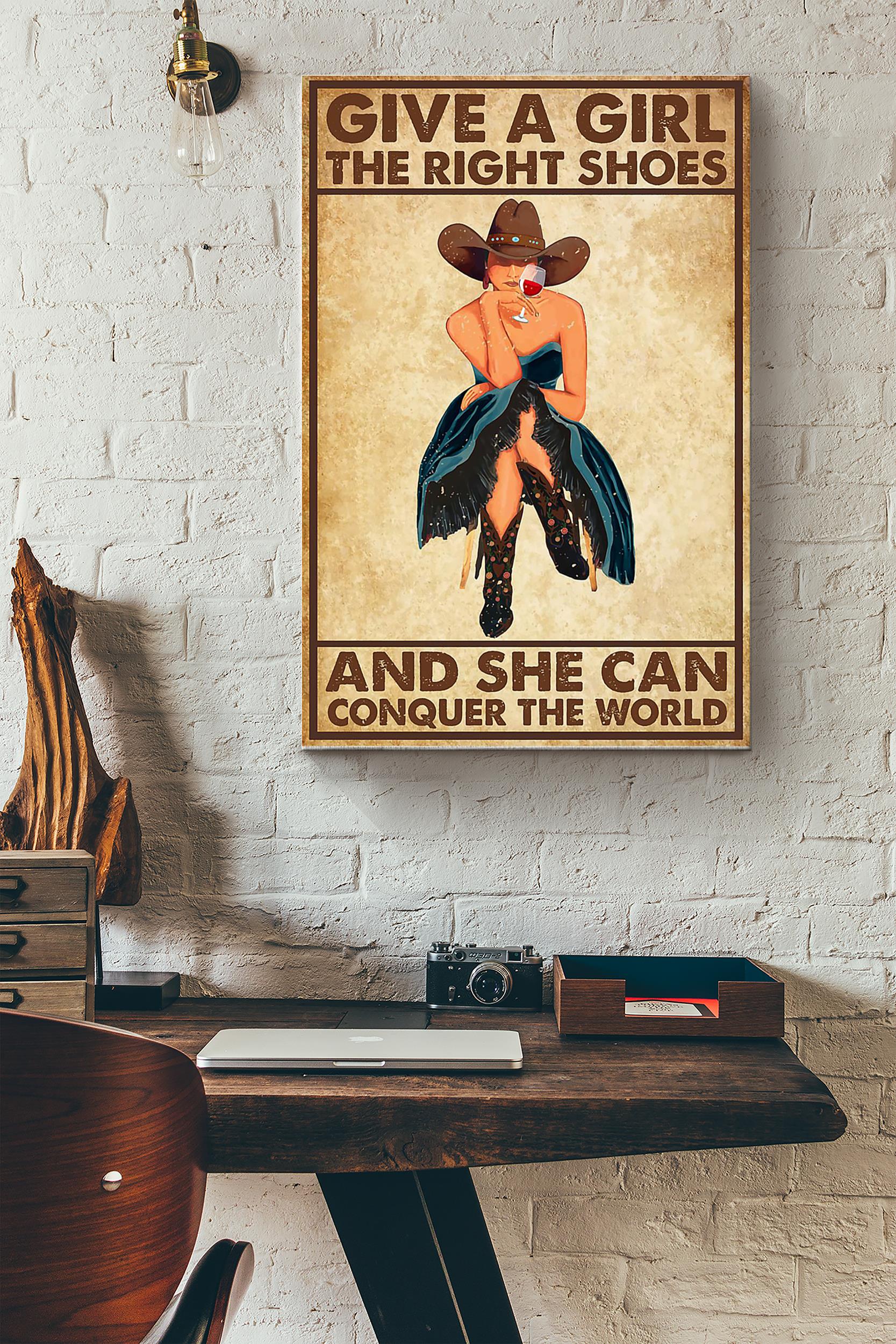Horse Give A Girl The Right Shoes Poster – Animal Wall Art – Gift For Horse Lover Horse Rider Cowboy Farmhouse Decor Wrapped Canvas