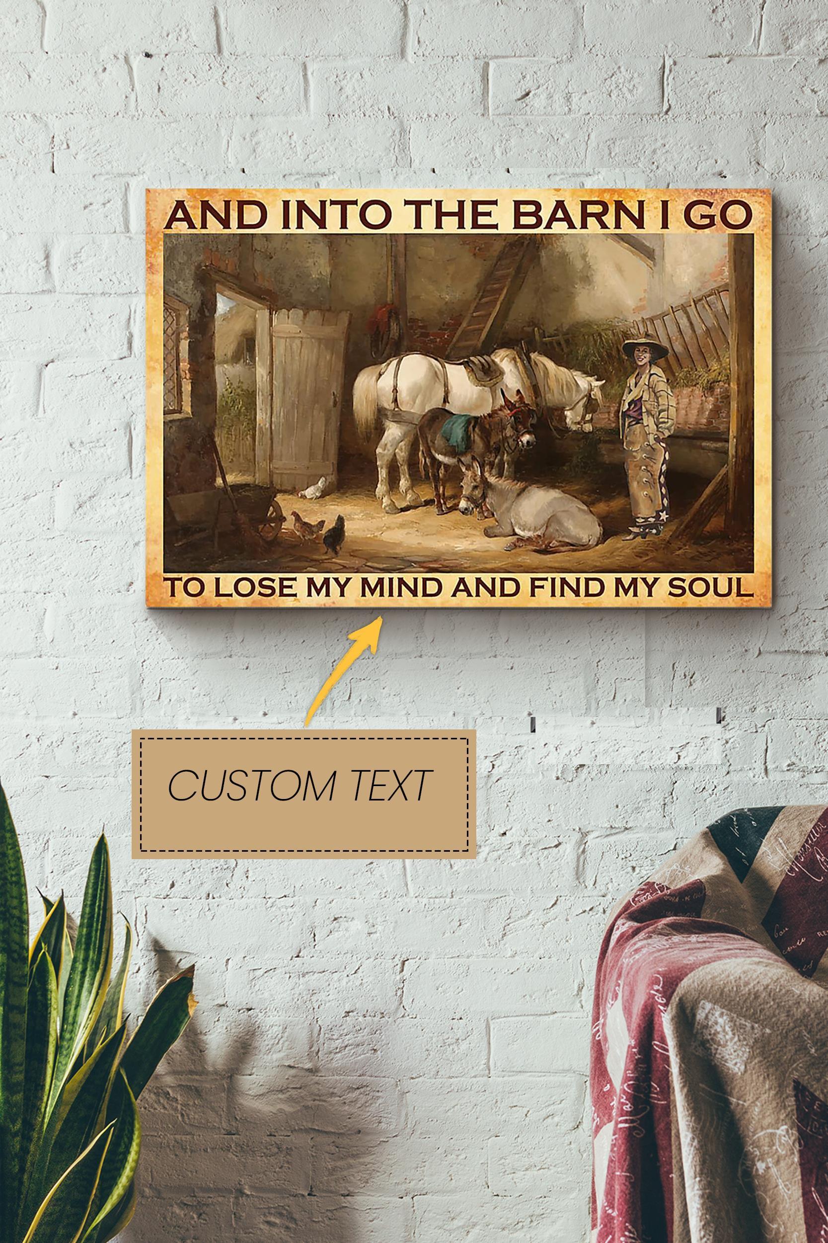 Horse Lover At The Barn Poster – Animal Wall Art – Gift For Horse Rider Cowboy Farmhouse Decor Wrapped Canvas