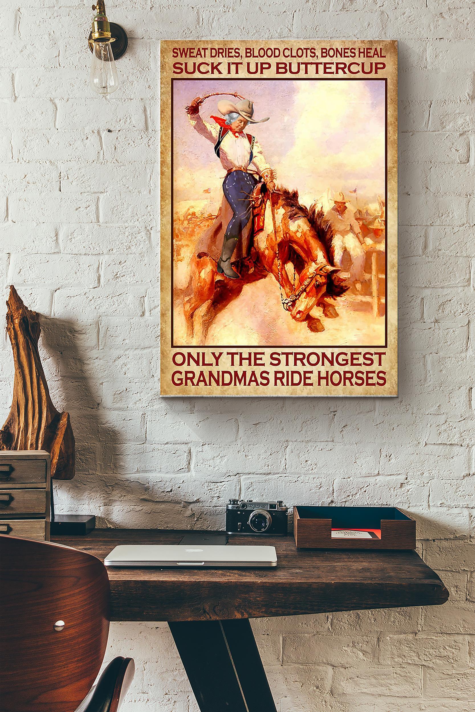 Horseback Rider Only Strongest Grandmas Poster – Running Horse Wall Art – Gift For Horse Lover Horse Rider Farmhouse Decor Wrapped Canvas
