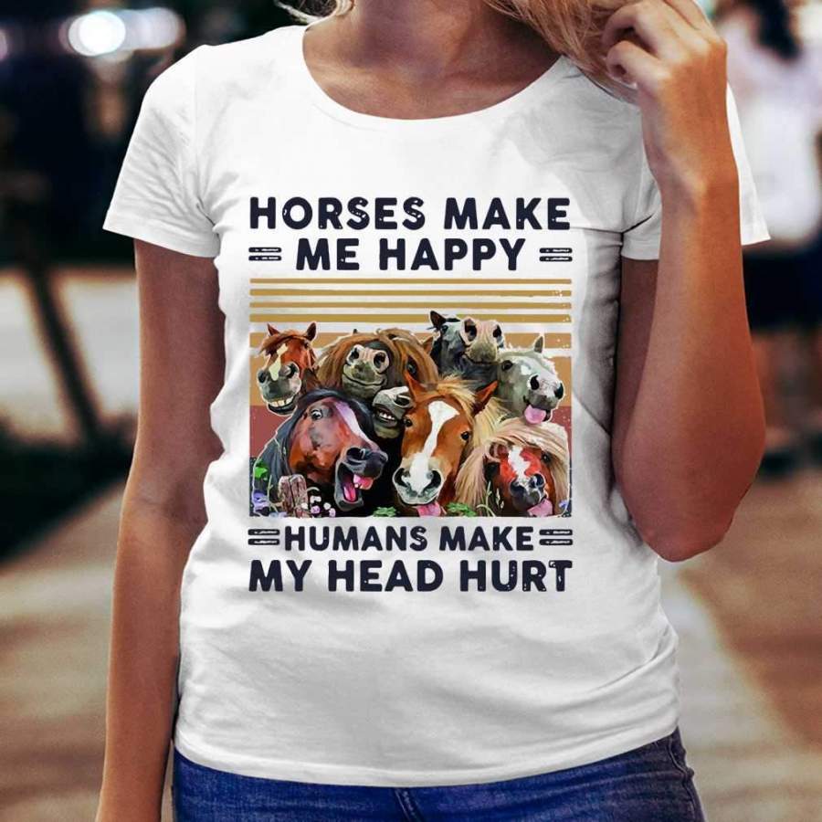 Horses Make Me Happy Humans Make My Head Hurt Vintage Retro T-shirt