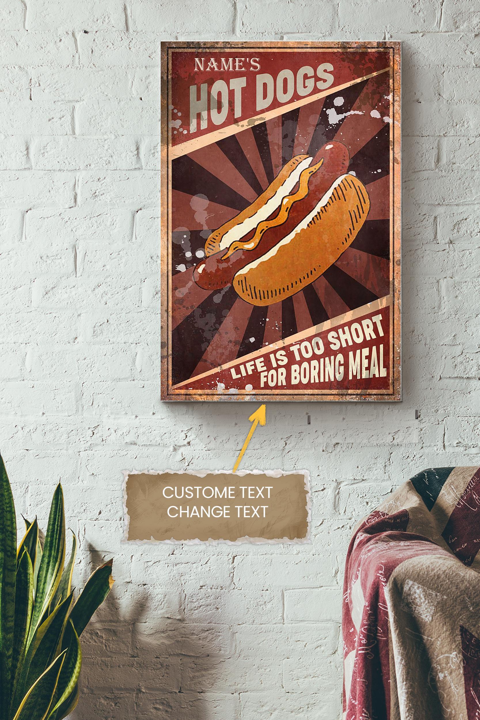 Hot Dog Personalized Poster – Food Wall Art – Gift For Kid Hot Dog Lover Wrapped Canvas