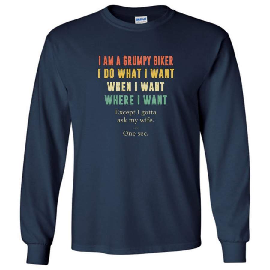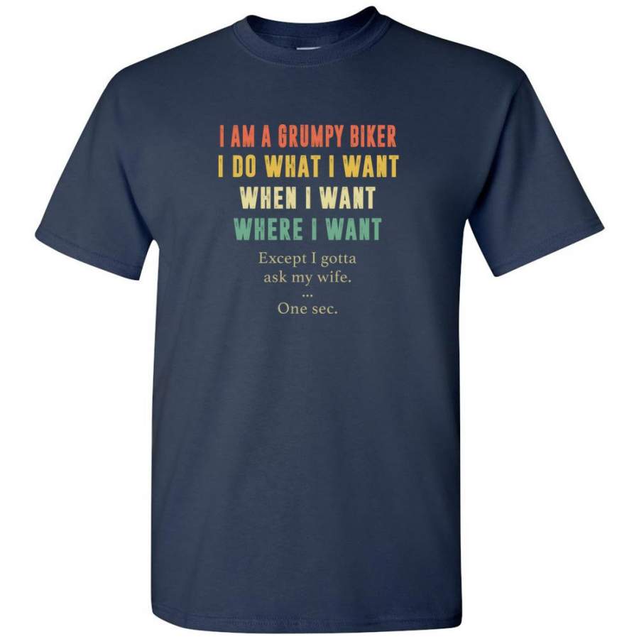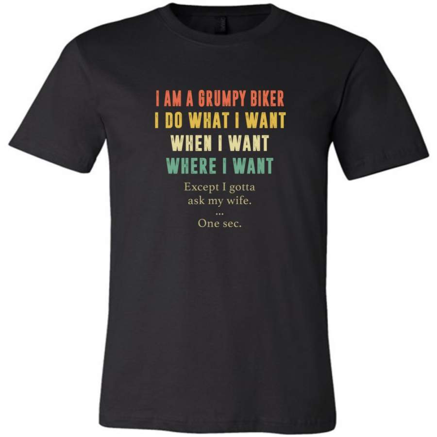 I am a grumpy biker I do what where when I want except I gotta ask my wife one sec vintage tee shirt